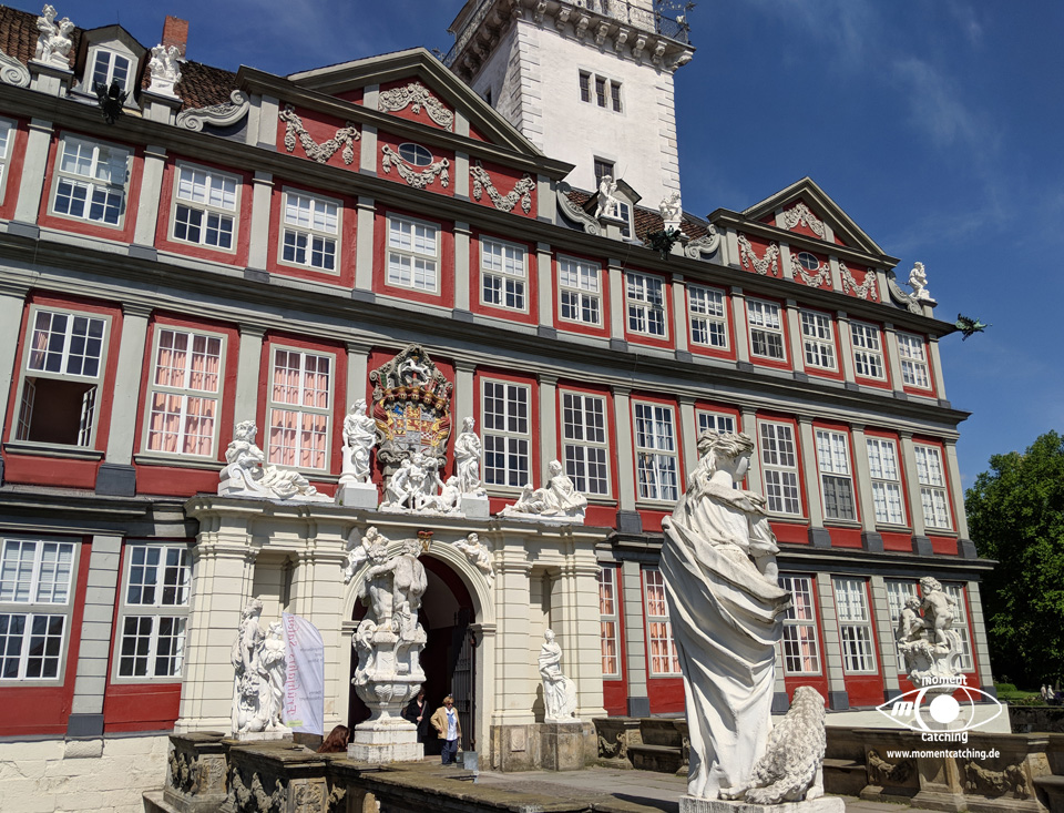 Wir sind mit den Fahrrädern aus Hameln zum Schloss Hämelschenburg (Emmerthal) gefahren und haben es mit einer Führung besichtigt. War sehr schön, bsonders die vortragende Dame hat es sehr gut gemacht. In dem Cafe vor dem Schloss haben wir einen Kaffee getrunken. Zurück nach Emmerthal sind wir auf der Ostseite der Bahn gefahren. |