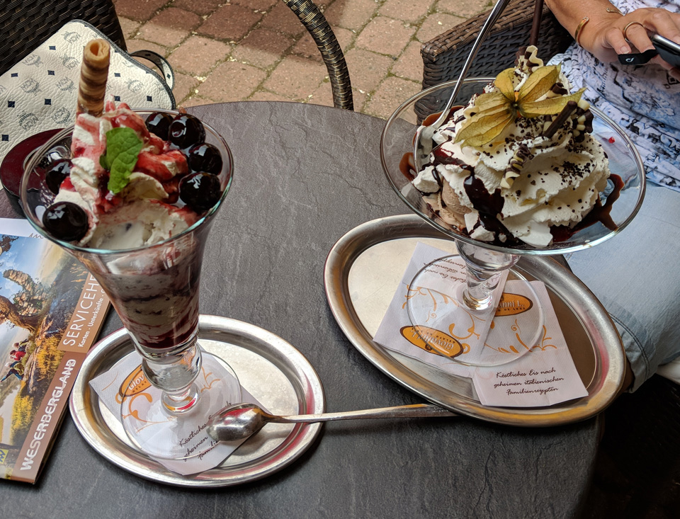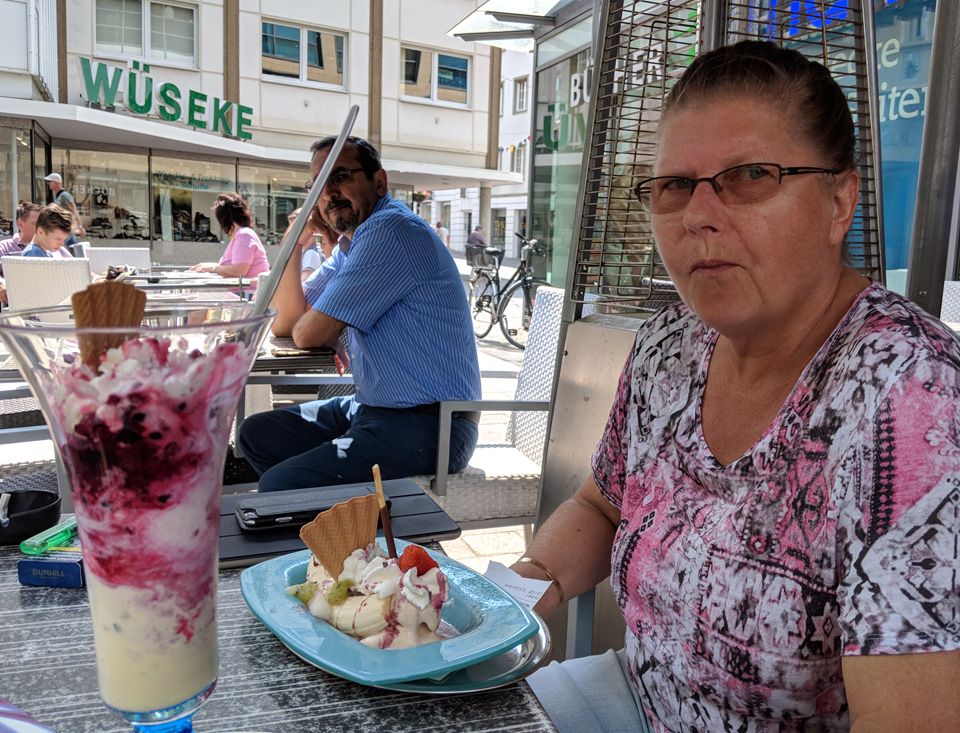 Wir sind mit den Rädern nach Neuhaus zum Schloß gefahren. Dort haben wir das Schloßmuseum besichtigt. Weil heute Tag des Museums war brauchten wir keinen Eintritt zahlen. Nach einer Runde um den Lipper See sind wir wieder zurück nach Paderborn. Das Schloßmuseum war nicht sehenswert. Keine Raumausstattung und die wenigen Räume durch moderne Vitrinen verschandelt. Das meiste vom Schloß ist Realschule. Ich habe Susanne anlässlich des Muttertages zum Eisessen bei unserem Lieblingseisladen in Paderborn eingeladen. Es waren mehr Plätze frei als in der Woche. Wir haben erfolgreich geschlemmert. |