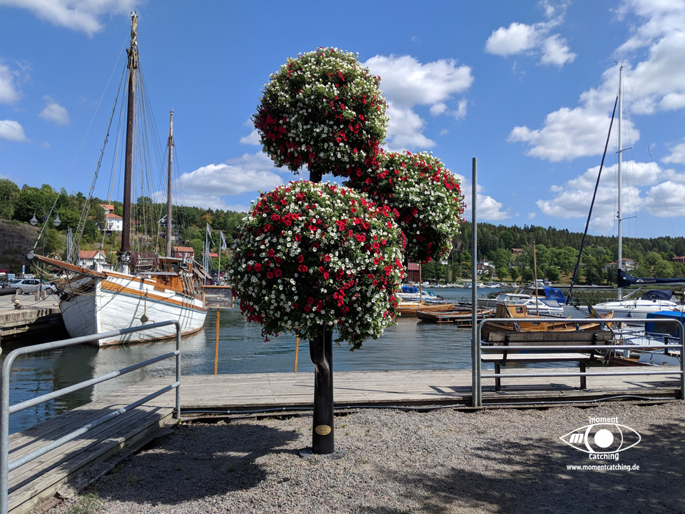 Wir sind auf dem Stellplatz Norra Kajen in Oskarshamn eingetroffen. Hier lagen wir schon mit der Selektra. Wir haben noch einen Platz mit Stromanschluss bekommen. Nach uns füllte sich der Platz rapide. Wir haben uns mit dem Heck zum Hafen hingestellt und haben eine schöne Sicht auf den Yachthafen. Der Platz ist für sein Angebot relativ teuer. Entsorgung ist nur in 2,5 km auf dem Campingplatz möglich. So etwas geht ja nun wohl gar nicht. Wir haben einen Spaziergang durch Oskarshamn gemacht. In den Gassen und zwischen den Häusern steht die Hitze und die 31° C machen uns ganz schön zu schaffen. Wir waren nur in der Touristeninfo und sind dann relativ schnell wieder zum Womo zurück. In den Gärten der alten Häuser ist alles verdörrt. Vor dem Einkaufscentrum hat die Kommune kaltes Trinkwasser kostenlos verteilt. Toller Service. Wir merken auch, dass wir zu nichts so richtig Lust haben. Nur im Schatten sitzen und sich nicht bewegen. |
