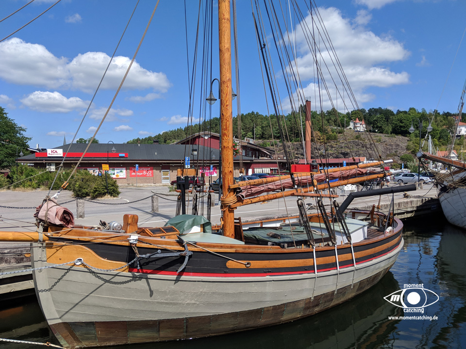 Wir haben eine Radtour von Nogersund nach Hörvik gemacht und haben uns dort den Stellplatz angesehen. Dann ging es weiter nach Djupekas und über Lörby nach Mjällby und von dort nach Hällevik. In Hällevik haben wir uns auch den Stellplatz angesehen. Er ist keine Alternative zu Nogersund. Es gibt dort allerdings zwei funktionierende Fischräuchereien und einen Einkaufsladen. Heute waren wir im kleinen Restaurant am Hafen in Nogersund essen. Es gab Fisch mit Pommes. Das Essen war mit 115 SK sehr preiswert und trotzdem lecker. Es war das erste mal auf diesem Schwedentörn. Wir hatten schon am Vorabend einen Tisch bestellt. Es war auch richtig voll. War also gut, dass wir bestellt hatten. |