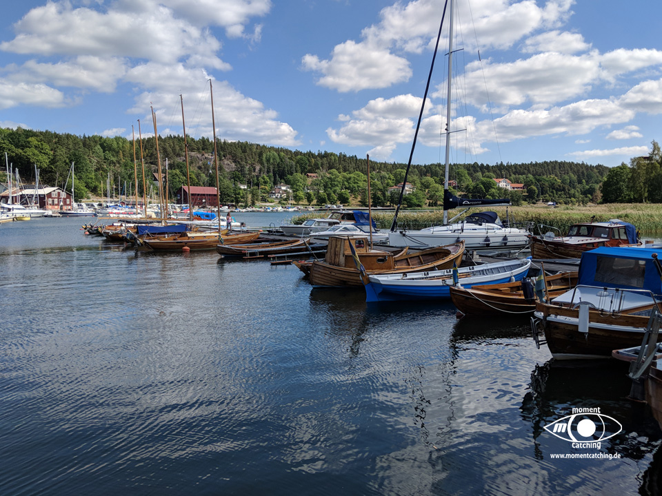 Wir haben den Stellplatz Nogersunds Hamn in Nogersund erreicht. Wir stehen mit dem Heck direkt zur Hanöbucht und blicken auf die Insel Hanö. Das ist wieder ein Platz nach unserem Geschmack. Es ist zwar immer noch sehr warm, aber durch den frischen Seewind lässt es sich gut aushalten. Viel angenehmer als auf dem heißen Asphalt in Karlskrona. Der Hafen ist ziemlich groß und es gibt hier auch noch Fischer. | ![]() ![]() |