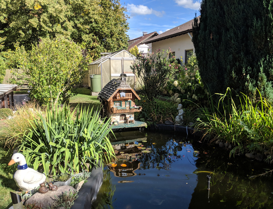 Wir haben den Stellplatz in Sinsheim erreicht. Ein sehr schöner Stellplatz mit allem was man als Womo-Reisender so begehrt. Im Bistro des Schwimmbades erhält man einfache Brötchen ab 09:00 Uhr. Wir stehen in der äußeren Reihe zur Bahn hin. Von der Baustelle direkt nebenan geht tagsüber etwas Lärm aus. Die Bahn ist relativ leise. Wir haben einen Spaziergang durch Sinsheim gemacht. Die Stadt hat uns nicht so richtig begeistert. Sie hat viele Neubauten aus der Nachkriegszeit. Es gibt aber auch noch Reste historischer Gebäude. Wir haben uns orientiert wo man relativ schnell einen Bäcker findet. In dem Raifeisenmarkt haben wir ein Mitbringsel für Rosel und Werner besorgt. Einen Frosch aus Beton und zwei Blumenbüschel aus Beton, passend zum Frosch. |