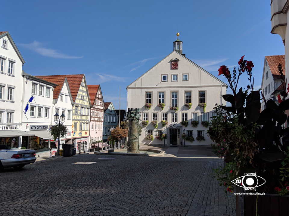 Wir sind mit den Rädern in die Altstadt von Hechingen gefahren. Das war eine richtige Bergtour. Die Stadt hat uns nicht gefallen. Es fehlt jede Beschilderung für die Sehenswürdigkeiten. Die Altstadt hat für unser Empfinden keinen Charm. Mal abgesehen davon, dass dieser Ort nichts für ältere Menschen ist, weil alles nur rauf bzw. runter geht, fehlt eine Fußgängerzone und Einzelhandelsgeschäfte. Der Marktplatz mit dem Brunnen ist ein kleiner Ansatz. |