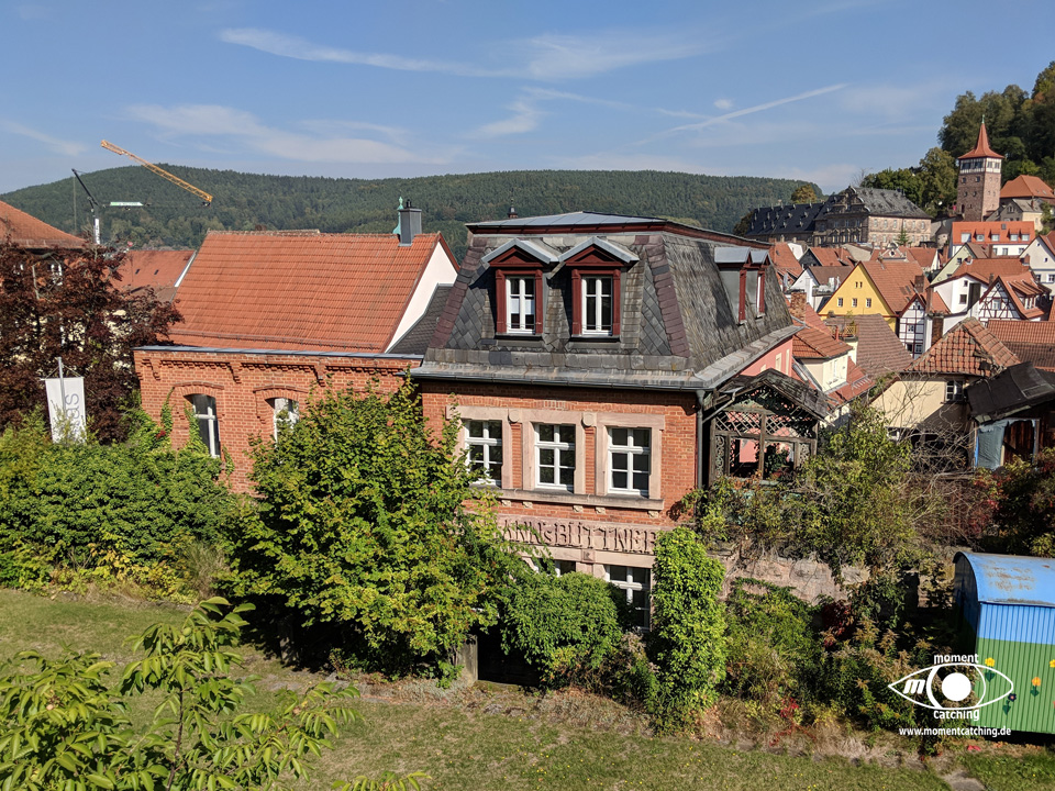 Wir sind mit den Rädern vom Stellplatz in Großheubach entlang dem Main nach Miltenberg gefahren. Der Ort hat uns richtig begeistert 💰. Eine zusammenhängende historische Altstadt mit romantischen Seitengassen. Wir haben auch eine Straße zur Burg hoch gefunden. Hier kann man mit moderater Steigung sogar hochfahren. Leider war die Burg geschlossen, weil Montags Ruhetag ist. |