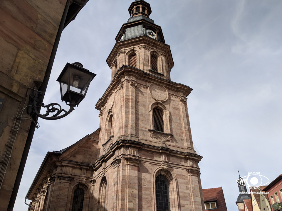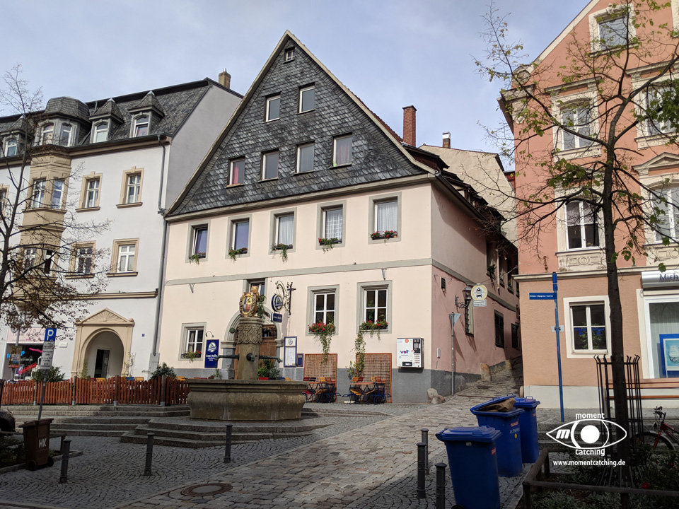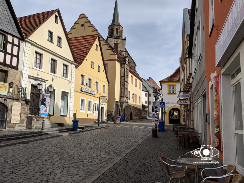 Wir haben unsere Räder bei Fahrrad Gruber abgeholt. Meinen Akku muss ich selbst einschicken, da sie von meinem Typ keinen Ersatzakku haben. Bei Susanne wurde das Motorenkettenritzel und die Kette ausgetauscht. Alles zusammen hat mit Rabatt 180,- € gekostet. Wir sind auf dem Stellplatz in Kulmbach eingetroffen. Wir stehen in dem hinteren Areal. Die Stellplatzgebühr auf dem Platz ist freiwillig. Der Weg in die Altstadt beträgt ca. 200 Meter. Wir haben einen Spaziergang in die Altstadt von Kulmbach gemacht. Wir waren in der Touristeninfo umnd haben uns mit Material versorgt. Beim Bäcker in der Fuzo haben wir uns mit frischem Brot und Brötchen versorgt. Wir haben uns auch schon den Rathausplatz angesehen. Die Hospitalkirche war verschlossen. Wir haben in den Unterlagen aber gelesen, das man sich in der Konditorei Schaller den Schlüssel dafür holen kann. |
