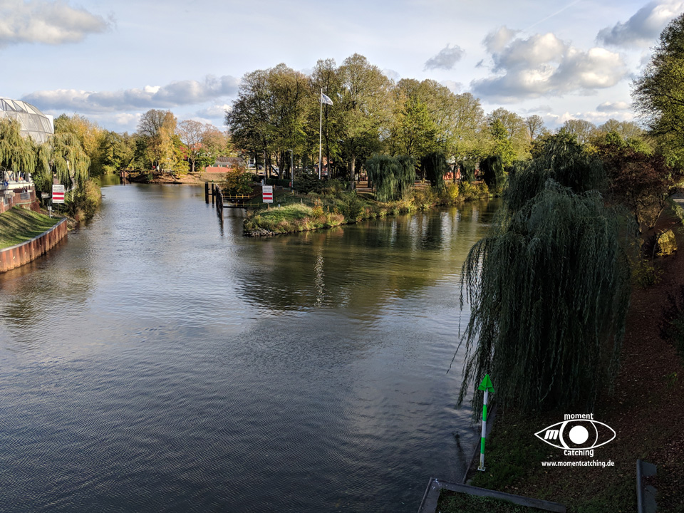 Eigentlich wollten wir nur die Touristeninfo in Meppen aufsuchen. Als wir dann aber einen Stadtplan hatten, kam uns die Idee, über den Mediamarkt zur Koppelschleuse zu gehen. Die Entfernung war uns nicht so wirklich bewußt. Wenigstens hat Susanne schon unterwegs ihre 10.000 Schritte zusammen bekommen. Trotzdem war der Spaziergang sehr schön. |