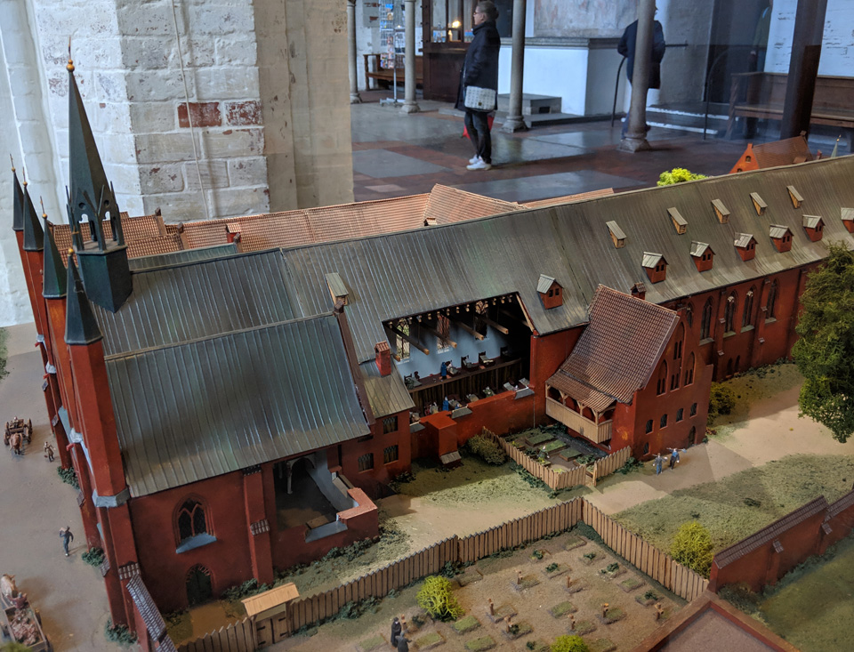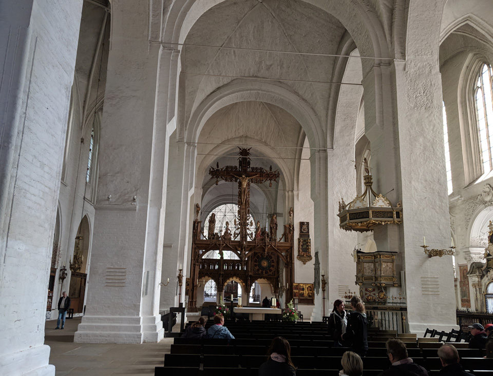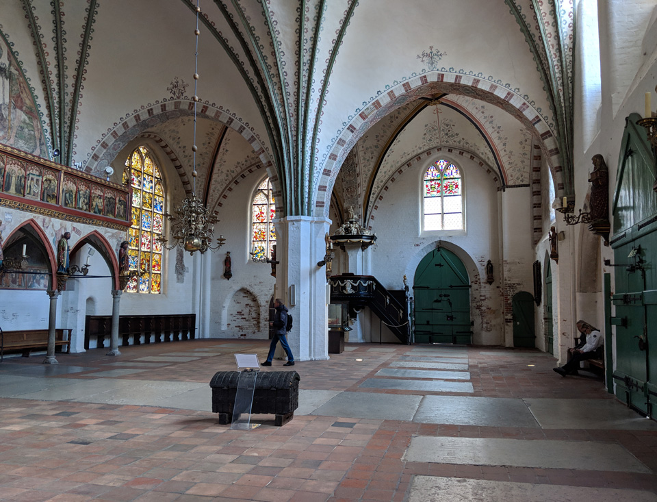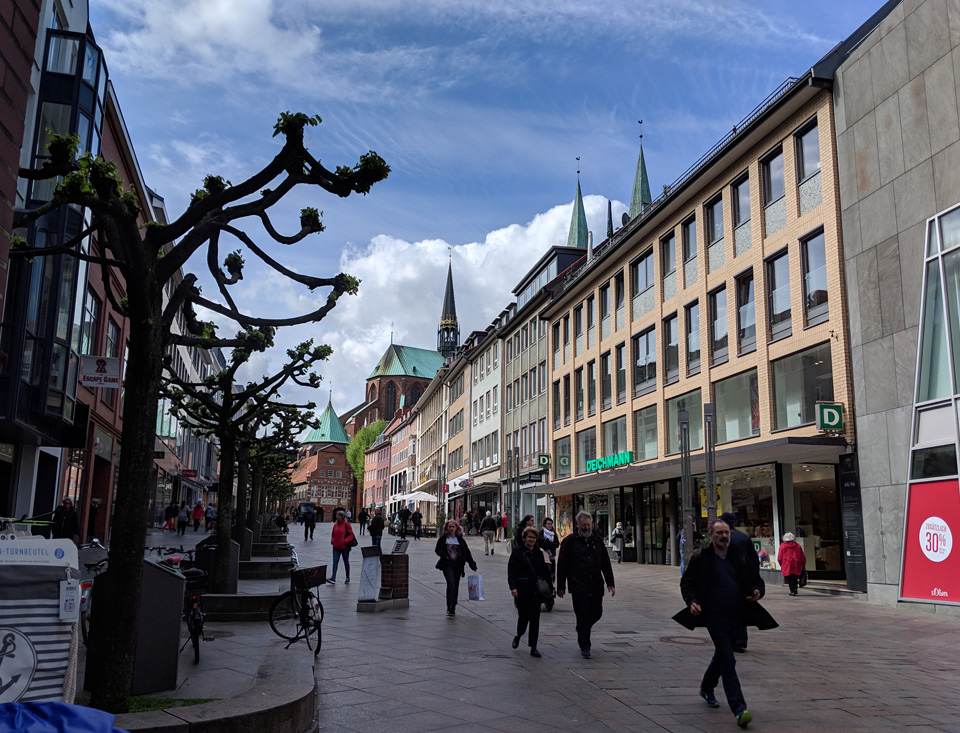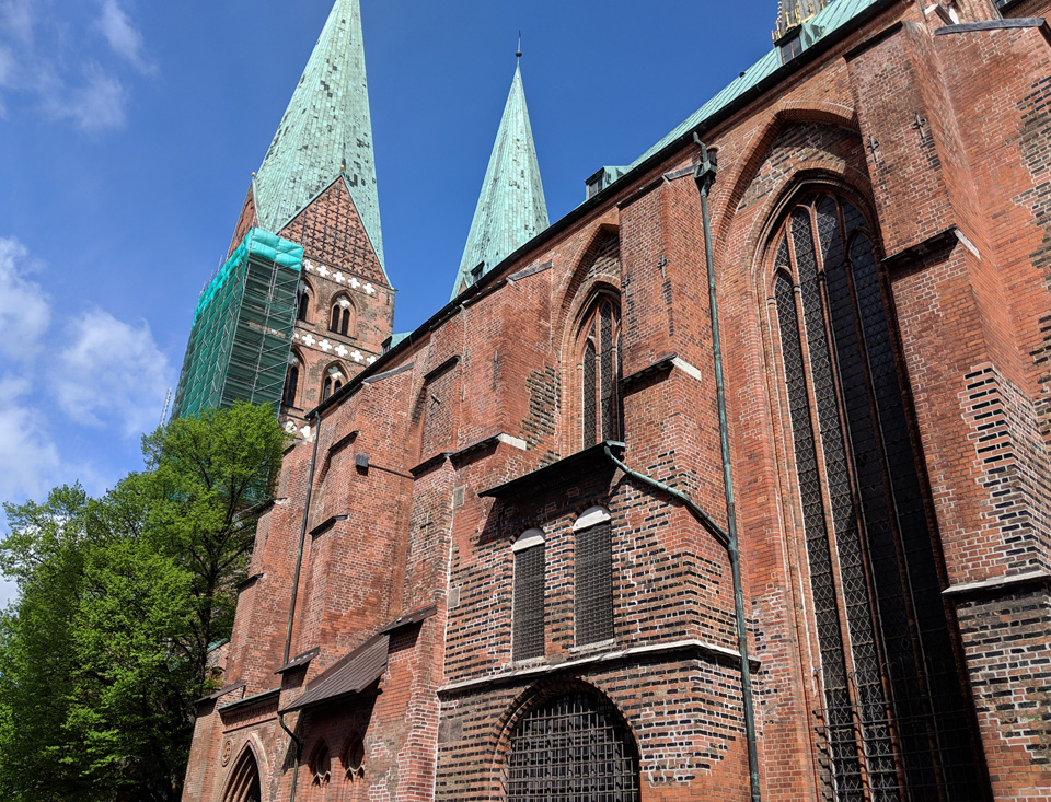 Heute beim Frühstück schien die Sonne und von drinnen sah es ganz frohlockend aus. Da ich aber bereits Brötchen holen war, wusste ich, dass es lausig kalt ist. Hat uns trotzdem nicht davon abgehalten, in die Stadt zu starten. Wir sind mit dem Bus Nr. 12 in die Altstadt von Lübeck gefahren. Hin- und Rückfahrt für 2 Erwachsene kostet 9,10 € und ist einfach bequem. Wir sind einmal quer durch die Altstadt gelaufen. Als erstes haben wir mir eine Mütze gekauft. Der neue Winter hat mir etwas zu schaffen gemacht und dann noch meine kurzen Haare. Das Wetter war wie im April, Sonnenschein und Regenhuschen in kurzem Wechsel. Trotzdem hat uns die Stadt wieder fasziniert. Fast direkt an unserer Ausstiegstelle befindet sich die St. Jacobikirche. Die haben wir besichtigt. Sie hat eine monumentale Ausstattung. Sie war wohl die Kirche der Seefahrer. Wir sind die Fußgängerzone weiter gegangen und haben die Marienkirche besichtigt. Dieses Bauwerk benötigt dringend eine Sanierung. Die meisten Seitenkapellen sind leer. Die drei Kirchenschiffe erscheinen schier unendlich Hoch. Von dieser Kirche ging es zu dem direkt angrenzenden Rathauskomplex. Dieser Gebäudebereich beeindruckt uns immer wieder. Durch das miese Wetter war heute allerdings der Marktplatz relativ leer. Den haben wir schon anders erlebt. Von da aus wollten wir eigentlich zum Holstentor und dort zur Touristeninfo. Da wir aber falsch abgebogen sind haben wir eine Schleife an der Trave gezogen. Die Touristeninfo ist auch ein großer Souvenierladen. Zurück sind wir dann direkt durch das Holstentor gelaufen. Gleich hinter der Kreuzung haben wir den ersten Marzipanladen gefunden. Wir waren tapfer und haben nichts gekauft. Ausserdem wollten wir ja noch zu dem großen Niedereggerladen. Über eine kleine Schleife vorbei am Puppentheater sind wir in der aufgelassenen St. Petrikirche gewesen. Sie wird nur noch für Veranstaltungen genutzt. Jetzt ging es wieder zurück zum Rathaus in den direkt gegenüberliegenden Niedereggerladen. Das Angebot ist wirklich beeindruckend. Das Niedereggermuseum fand ich nicht sonderlich aufregend. Im Laden haben wir uns zwei Stücken von der Nuss-Marzipan-Torte gekauft. Dem Wetter trotzend haben wir aus purer Neugier uns ein Marzipaneis gekauft. Das waren relativ kleine Kugeln, aber ausgesprochen lecker. Bei Karstadt haben wir für unseren Tisch im Womo eine Decke besorgt. Nun wollten wir zurück zum Burgtor um von dort mit dem Bus wieder zum Stellplatz zu fahren. Dazwischen haben wir aber das Heilig-Geist-Hospital entdeckt und besichtigt. Das war sehr interessant. An der Bushaltestelle angekommen, fuhr auch der Bus schon fast vor. So muss das sein. Susanne hatte schon fast ihre 10.000 Schritte zusammen. Wir waren Essen in dem Lokal von der Bowlingbahn an unserem Stellplatz. Wir hatten Spargel mit Schnitzel. Das war richtig lecker und reichlich. Wir hatten nicht erwartet für 12,90 € soviel Spargel zu bekommen. Die Gaststätte hat ein richtig gutes Preis-Leistungs-Verhältnis. Außerdem haben wir noch auf jedes Essen 1,- € Rabatt über den Stellplatz bekommen. |