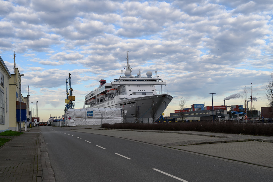 Wir haben einen Spaziergang in die Altstadt von Wismar gemacht. Unterwegs haben wir uns das Kreuzfahrtschiff, das im Westhafenbecken liegt, mal aus der Nähe angesehen. Ein ganz schön großes Schiff, aber auch nicht eins von den Luxuslinern. Abends sind wir zu unserem Lieblingsrestaurant Seeperle gelaufen und haben dort leckeren Fisch mit Bratkortoffeln und einem Salat gegessen. Obwohl die eigentlich um 19:00 Uhr schließen, war es um 19:00 Uhr nocht komplett voll.