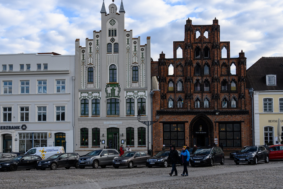 Noch einmal haben wir uns auf den Weg in die Altstadt von Wismar gemacht. Dieses mal in den südlichen Bereich, das Umfeld der St. Georgenkirche, dem sogenannten gotischen Viertel. Vorbei an der St. Marienkirche zum Marktplatz. Auf dem Rückweg haben wir uns in der Conditorei Senf, allerdings in der Lübschen Straße, nochmals Pfannkuchen und ein Brot mitgenommen.