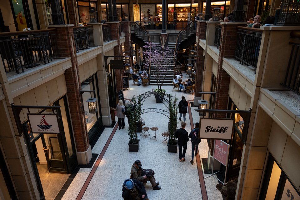 Vorbei an dem beeindruckenden Rathaus sind wir in die Mönckebergstraße eingebogen. Sie entspricht unserem Ku-Damm in Berlin. Hier gibt es auch Höfe und Wandelgänge.
