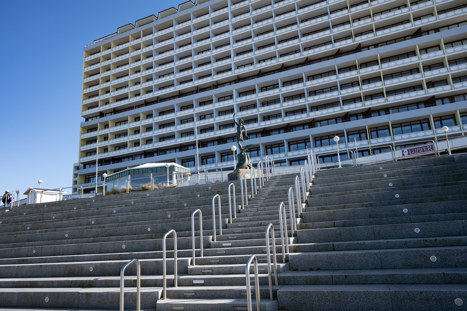 Wir sind vom Stellplatz in Heiligenhafen aus über das Ferienzentrum zum Ostseestrand gelaufen. Wir haben uns erkundigt wo der Bäcker ist und haben das Umfeld besichtigt. Vom Stellplatz bis zum Ort selbst sind es über 2 km.
