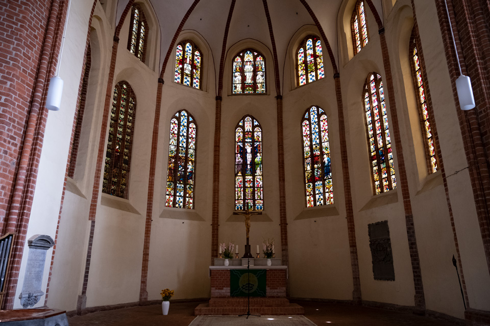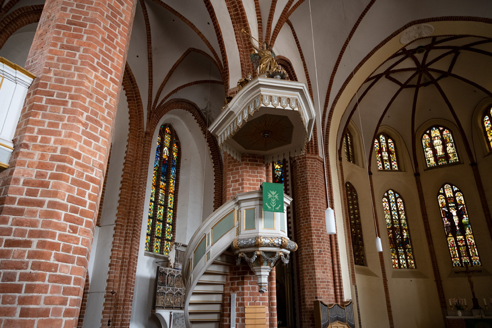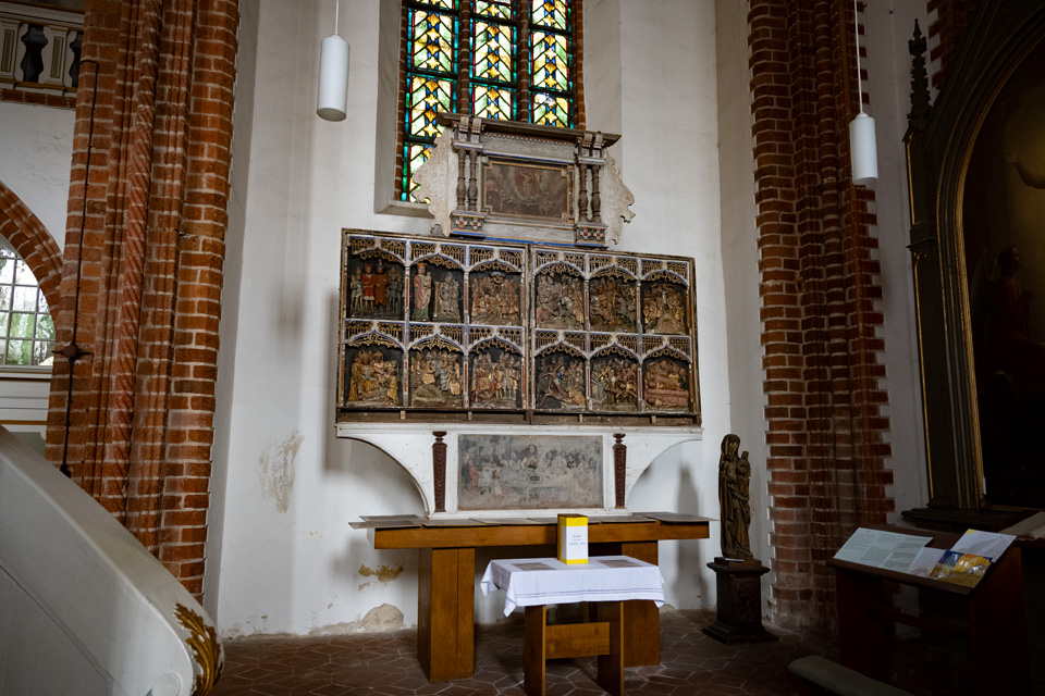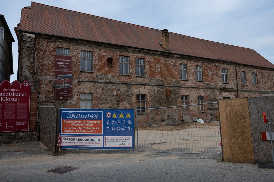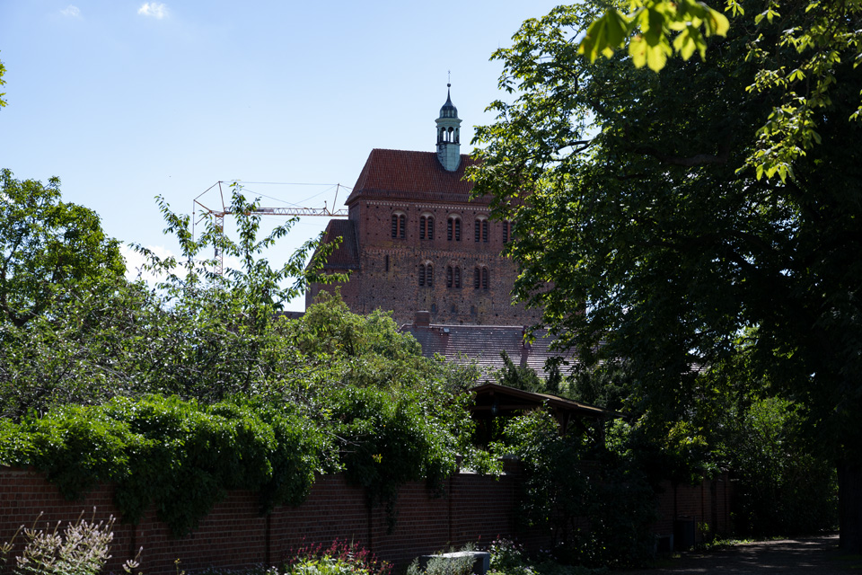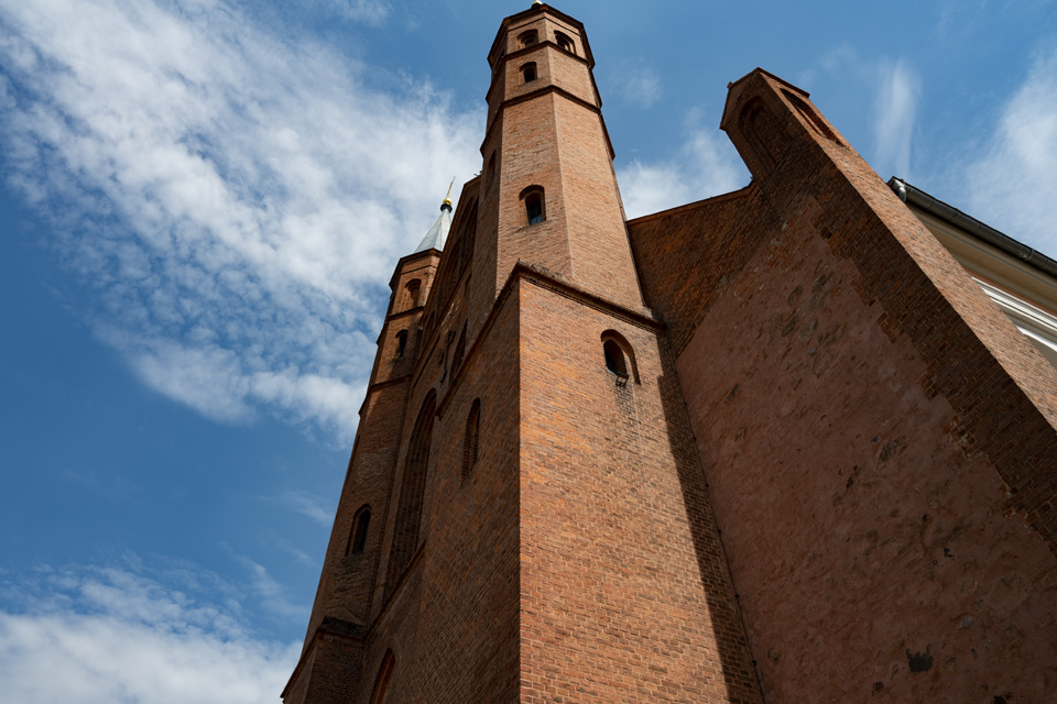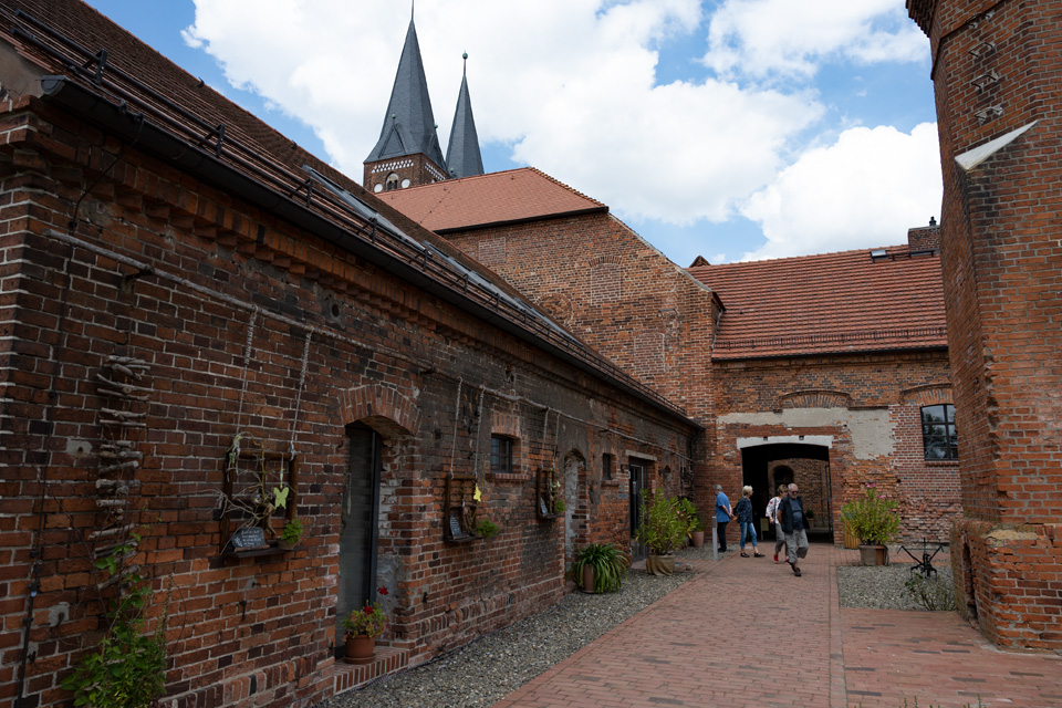 Wir sind vom Stellplatz in Kyritz entlang der ehemaligen Stadmauer in Richtung Westen gelaufen. Die Reste des ehemaligen Klosters sind z. Zt. nicht zugänglich, da umfangreiche Restaurierungsmaßnahmen stattfinden. Nächstes Ziel ist die St. Marienkirche. Obwohl es schon 10 Minuten nach 13:00 Uhr ist, ist sie immer noch verschlossen. Wir haben im geschlossenen Gemeindezentrum den Pfarrer getroffen, er hat die Kirche aufgeschlossen. An der Westseite der Stadtmauer ging es wieder zurück.