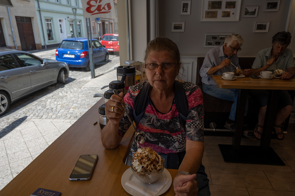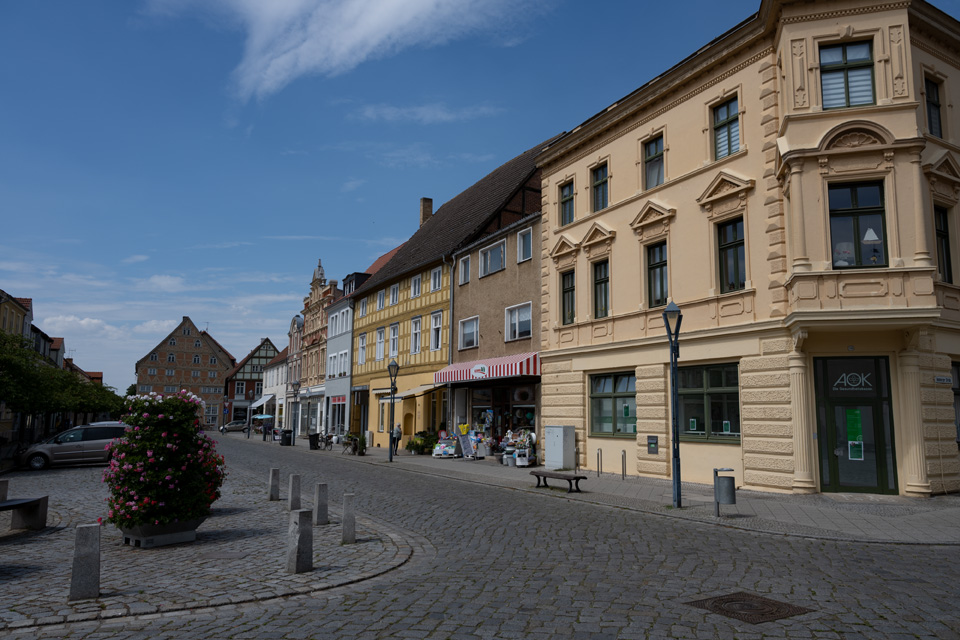 Wir haben einen ersten Spaziergang durch Kyritz gemacht. Hier hat sich anscheinend einiges gegenüber unserem ersten Besuch zum Positiven verbessert. Die meisten Häuser sind restauriert und es gibt einige flurierende Geschäfte. In der Hamburger Straße haben wir in einem kleinen Eiscafe wieder mal ein leckeres Eis gegessen. Auf dem Rückweg haben wir im NETTO am Stellplatz unsere Lebensmittel aufgefrischt.