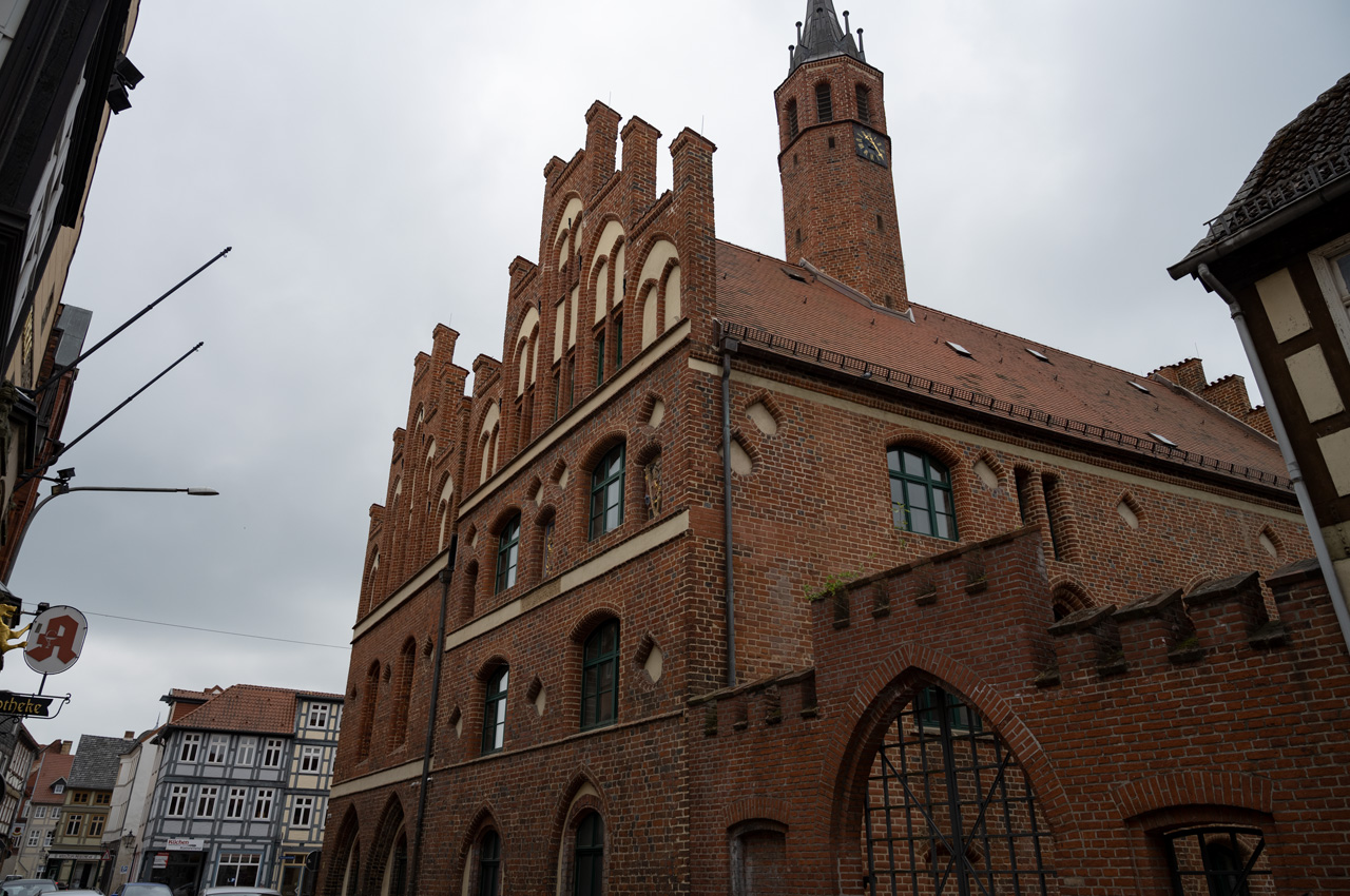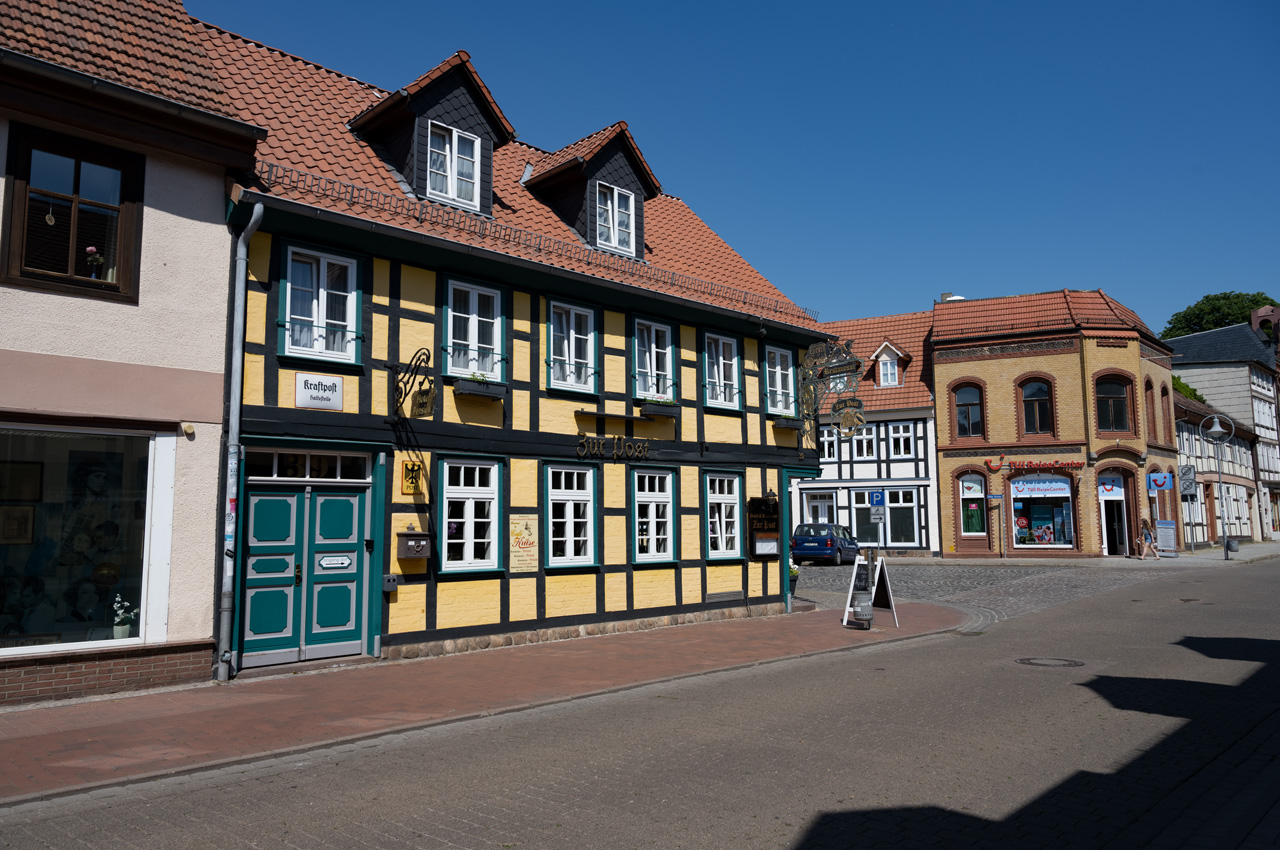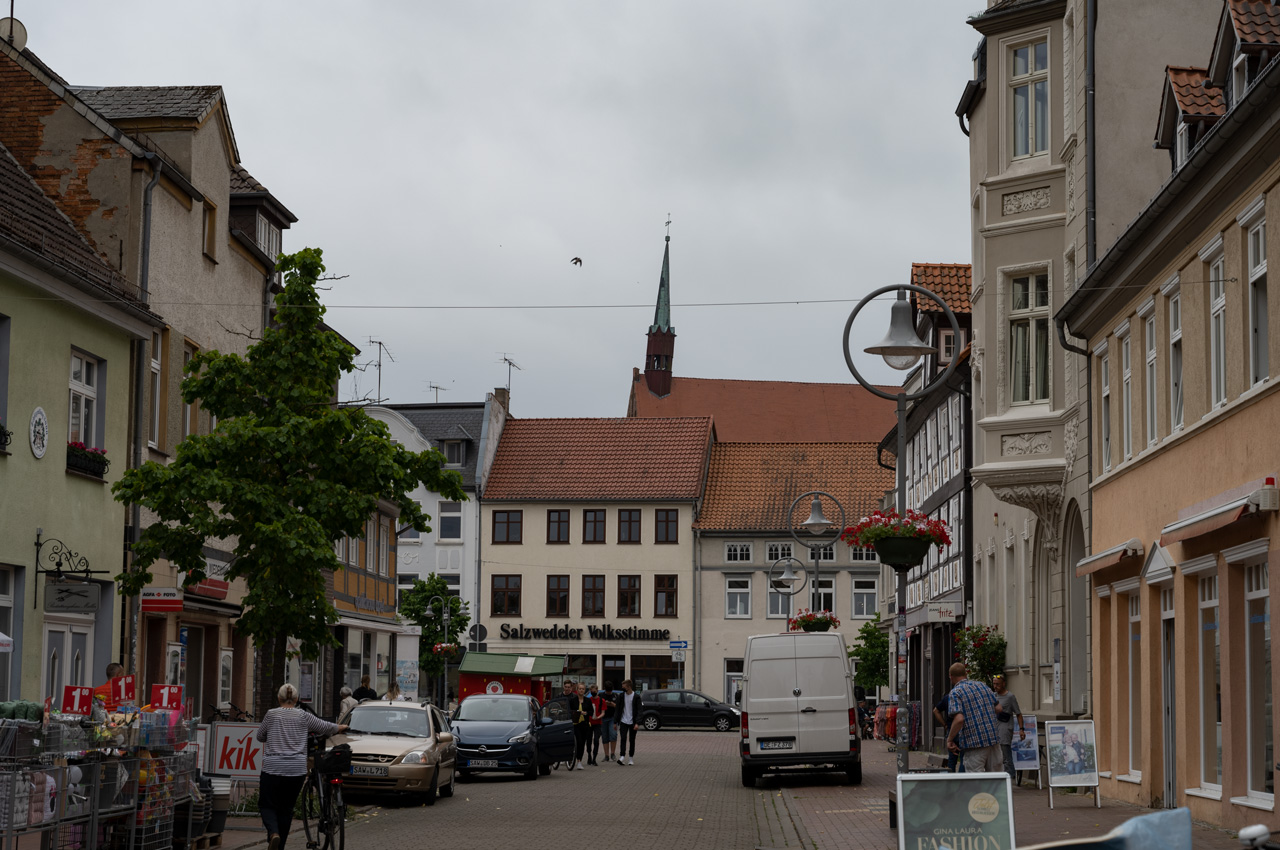 Wir sind vom Stellplatz aus in die Altstadt gelaufen, dass sind ca. 1000 Meter. Wir haben viele gut restaurierte Gebäude bewundert, einige davon stammen aus dem 16. Jahrhundert. Salzwedel hat noch einen guten Bestand an historischen Gebäuden, die in der Zwischenzeit sehr gut restauriert wurden. Allerdings kann man auch hier den Umbruch der sich gerade im Einzelhandelsbereich ereignet beobachten. Wir waren in der Touristeninformation und haben uns mit Infomaterial über die Stadt und die Altmark versorgt. Die Fleischerei Altmärker haben wir gesucht und gefunden. Mich störten dort Schilder mit der Aufschrift DDR-Jagdwurst und DDR-Leberwurst. Mir war nicht bekannt, dass die DDR Wurstsorten hervorgebracht hat. Ich vermute auch eher, dass es sich dabei um historische Rezepte der Altmark handelt. Gerade die DDR, die, wo immer sie konnte, das Handwerk bevormundet hat und in Roduktionsgenossenschaften gezwungen hat, muss man so etwas noch huldigen?