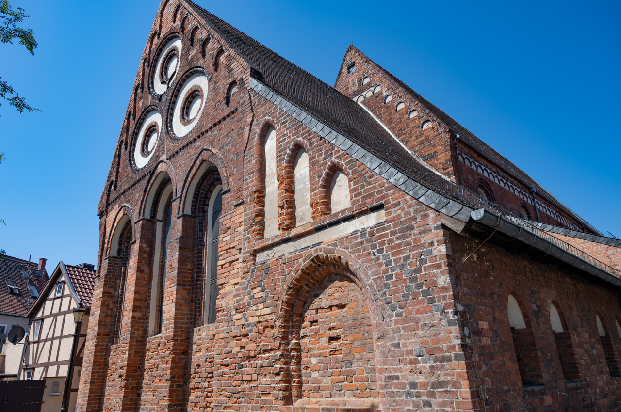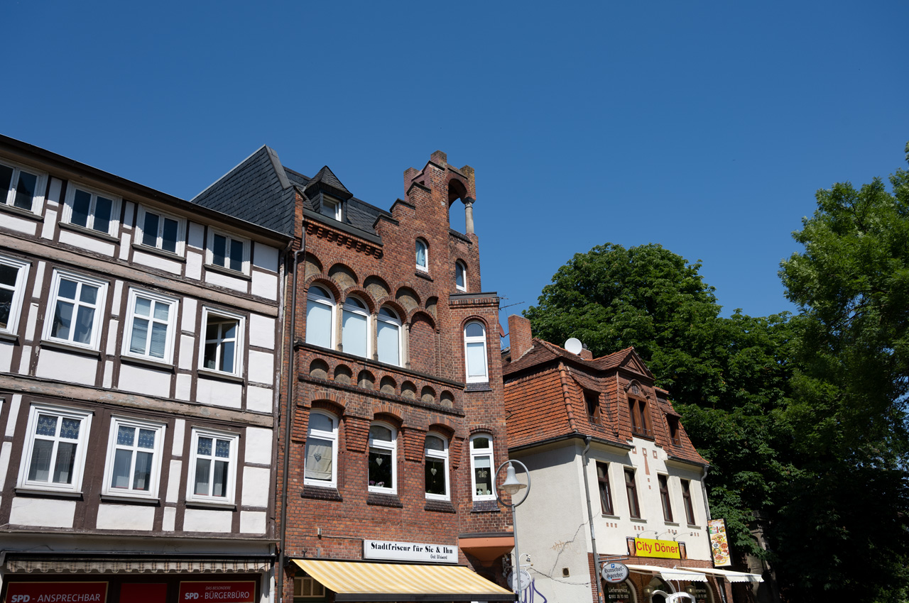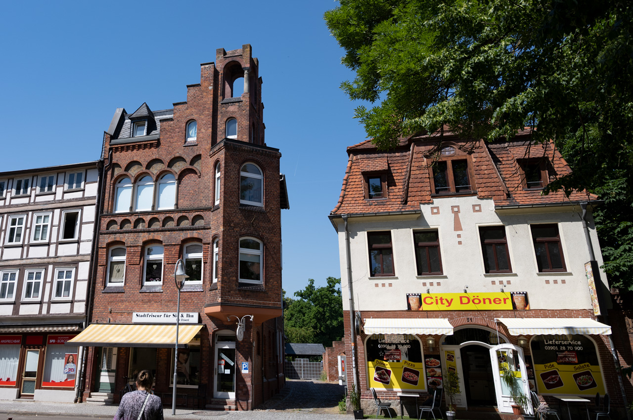 Wir sind vom Stellplatz aus in die Altstadt gelaufen, dass sind ca. 1000 Meter. Wir haben viele gut restaurierte Gebäude bewundert, einige davon stammen aus dem 16. Jahrhundert. Salzwedel hat noch einen guten Bestand an historischen Gebäuden, die in der Zwischenzeit sehr gut restauriert wurden. Allerdings kann man auch hier den Umbruch der sich gerade im Einzelhandelsbereich ereignet beobachten. Wir waren in der Touristeninformation und haben uns mit Infomaterial über die Stadt und die Altmark versorgt. Die Fleischerei Altmärker haben wir gesucht und gefunden. Mich störten dort Schilder mit der Aufschrift DDR-Jagdwurst und DDR-Leberwurst. Mir war nicht bekannt, dass die DDR Wurstsorten hervorgebracht hat. Ich vermute auch eher, dass es sich dabei um historische Rezepte der Altmark handelt. Gerade die DDR, die, wo immer sie konnte, das Handwerk bevormundet hat und in Roduktionsgenossenschaften gezwungen hat, muss man so etwas noch huldigen?