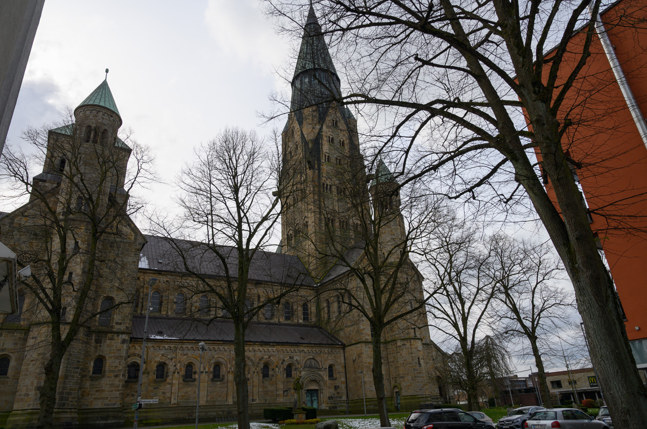 Wir haben einen Stadtspaziergang gemacht, obwohl das Wetter es uns nicht leicht gemacht hat, das Womo zu verlassen. Es blies uns auch hier ein eiskalter Wind in die Sachen. Wir sind über die Fußgängerbrücke gelaufen und haben als erstes den Bäcker angesteuert. Dort werde ich morgen dann frische Brötchen holen. Auf dem Weg in die Altstadt haben wir uns die St. Martini Kirche angesehen. Sie war sogar geöffnet, aber der eigentliche Kirchenraum ist durch ein Eisengitter abgesperrt. Die Kirche ist ziemlich düster. Vorbei an der alten Münze, dem wohl ältesten Steinhaus von Minden sind wir dann zur Marienkirche gelaufen. Auch sie hatte offen. Sie ist aber auch nichts Besonderes. Vorbei am alten Rathaus am Marktplatz mit einem Blick zu dem sehr sehenswerten Hermann Schmiedinghaus an der Südseite des Marktplatzes. Obwohl wir schon den Dom auch von innen kennen, sind wir nochmals hineingegangen. Der Dom ist aber nicht wirklich das, was man sich unter einem Dom vorstellt. Ist eigentlich wie eine normale Kirche. Von hier aus ging es zurück zum Womo. Wir waren jetzt auch genügend gelüftet.