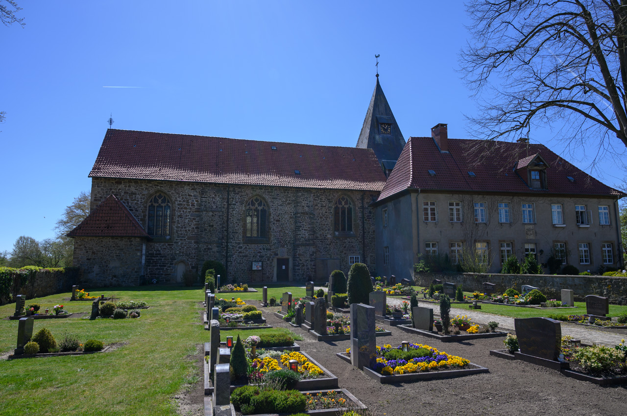 Heute begrüßte uns ein strahlend blauer Himmel. Nach dem Frühstück sind wir wieder auf unseren NIU gestiegen und zur Besichtigung der Innenstadt von Bramsche aufgebrochen. Beim Fahren haben wir gemerkt, dass es doch noch lausig kalt ist. Die Sonne ist trügerisch, weil die Luft eisig kalt ist. Erste Station war dort die St. Martin Kirche. Sehr zu unserer Freude war sie sogar offen. Eine wirklich tolle Kirche mit einer sehr interessanten Innenausstattung. Nach einem interessanten Gespräch mit einem Mitarbeiter der Kirche haben wir auch einiges über die anstehenden Osterveranstaltungen erfahren bis hin zu einem Ostermorgengottesdienst, der um 06:00 Uhr beginnt. Na toll, aber die Kirche scheint noch sehr aktiv zu sein. Nach der Kirchenbesichtigung sind wir ein mal komplett durch die Fußgängerzone geschlendert mit einem Abstecher zum Bahnhof. Der ist allerdings nicht wirklich sehenswert. Weiter ging es mit dem NIU zum ehemaligen Kloster Malgarten. Dort ist eigentlich nur die Kirche interessant und sehenswert. Sie hat eine historisch wertvolle Innenausstattung. Das Umfeld der Kirche hat ein Künstler voll im Griff, überall stehen seine Figuren. Von dem Kloster ist nur noch das Konventgebäude mit einem Rest des Kreuzganges übrig. Vom Kloster ging es zurück zum Womo. Unser Weg führte uns auf einer kleinen Landstraße durch eine schöne Landschaft, vorbei an teilweise einsamen Gehöften.