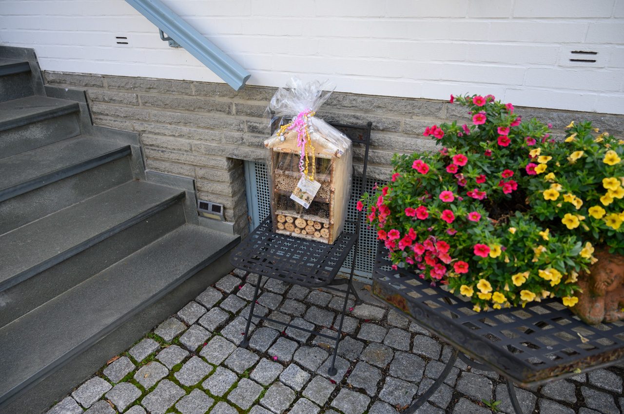 Nach einem Zwischenkaffee bin ich zu einer etwas größeren Wanderung gestartet und Susanne hat ihren Mittagsschlaf gemacht. Ich bin den Maschweg weiter in Richtung Norden gelaufen, vorbei an dem Freibad und dann schräg durch den Wald nach Bad Helmstedt. Dort war mein Ziel das Hotel Quellenhof. Dieses Hotel hat mal vor mehr als 40 Jahren meinem Bruder Bernd gehört, bzw. eigentlich der Deutschen Bank, die ihm das Geld dafür geliehen hat. Am Äußeren hat sich gegenüber meiner Erinnerung nicht viel geändert. Am Womo wieder angekommen, hatte ich ca. 14 000 Schritte auf meiner Fitnessuhr und es ging mir richtig gut. Susanne hat schon mit dem Kaffee auf mich gewartet.