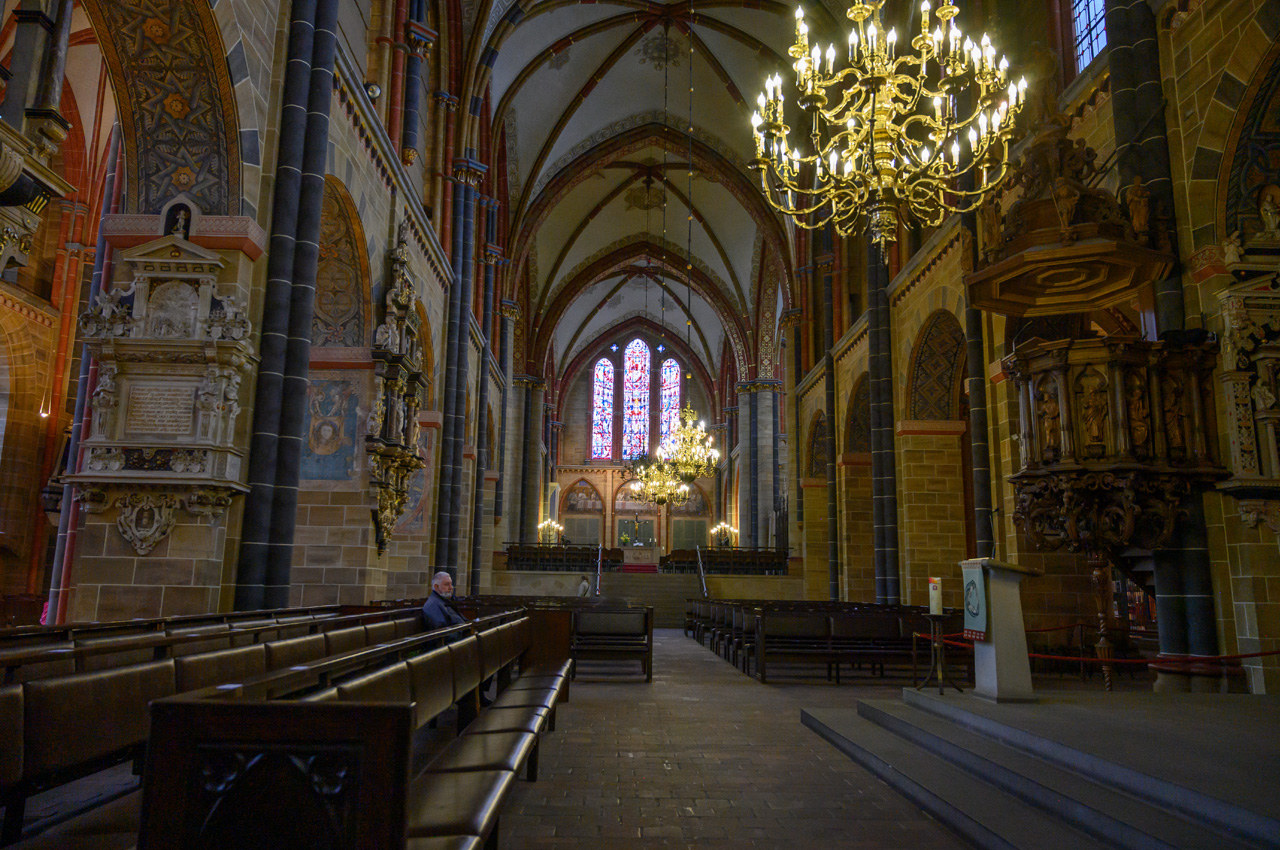 Wir haben uns nach unserem Mittagskaffee bei strahlendem Sonnenschein auf den Weg gemacht in die Innenstadt. Unser erstes Ziel war das Kasteel Radboud. Von außen sehr schön anzusehen, aber das Innere ist durch den Verfall zur Ruine in der Mitte des 19. Jahrhunderts stark geprägt. Es gibt nur noch wenige Stellen in dem Gebäude, die an die historische Vergangenheit erinnern. Was uns ehr gefallen hat war der Audio Guide, der sehr interessante Informationen gegeben.