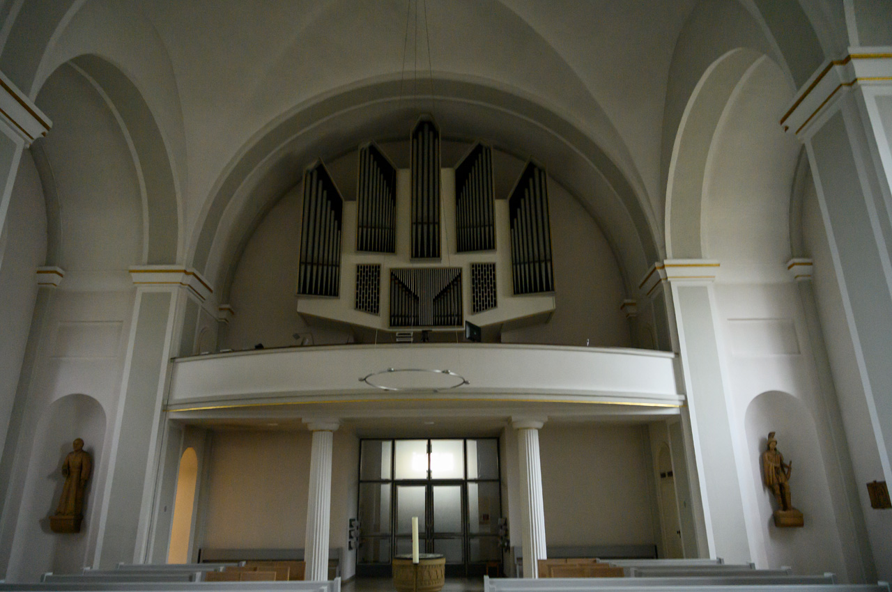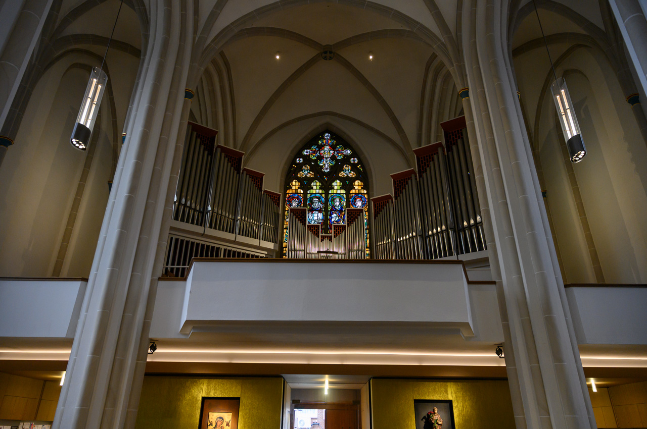 Gegen 16:00 Uhr hatte Susanne die Idee doch noch einnmal in die Stadt zu laufen. Sie meinte dort eine Postbank zu finden um Bargeld abzuheben. Das Rathaus ist ein modernes Gebäude, das ehemalige Einkaufszentrum steht fast leer und macht einen traurigen Eindruck. Es sieht so aus, als ob man es abreißen will. Die gegenüberliegende Kirche St. Sixtus war sogar offen, aber im Inneren stocke duster. Hier spart man offensichtlich schon Strom. Das haben wir auch bei vielen Geschäften beobachtet, viele haben keine Schaufensterbeleuchtung mehr an. Dieser Spaziergang hat unseren Eindruck allerdings auch nicht verbessert. Die Stadt ist im Vergleich zu den niederländischen Orten mit ihren historischen Altstadtbereichen ein echter Kulturschock.