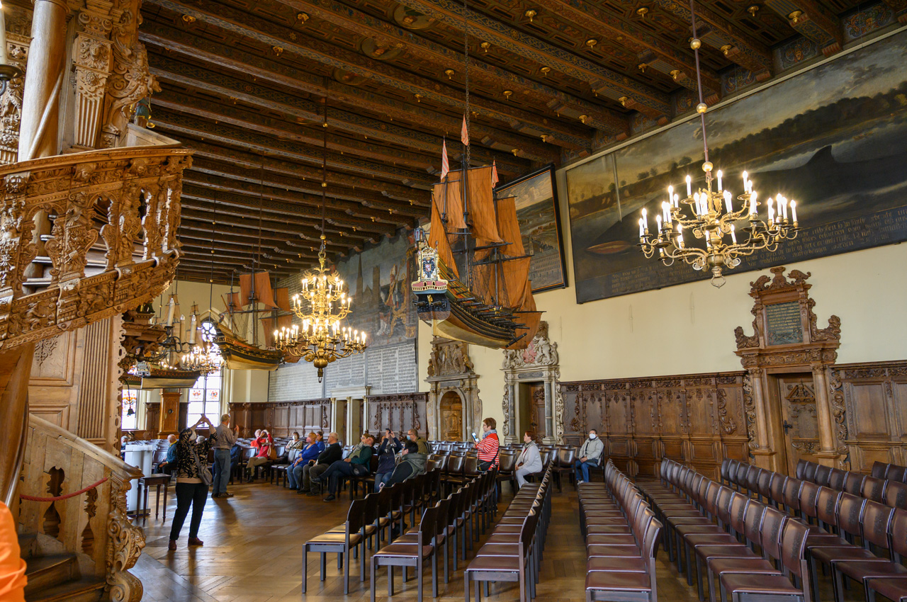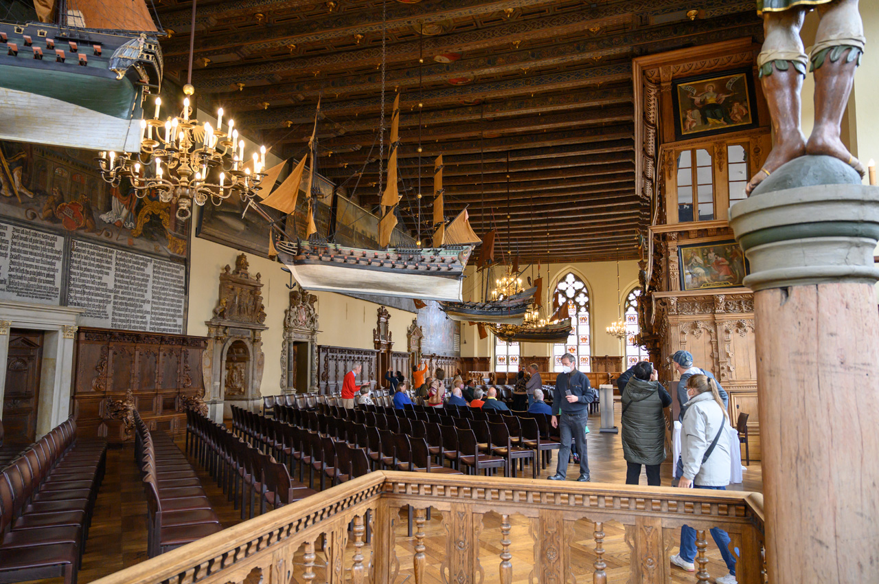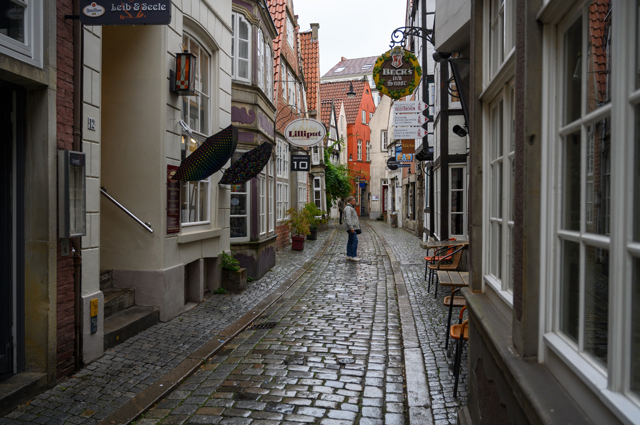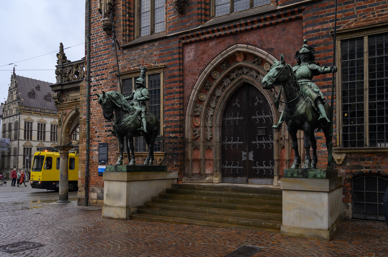 Nach dem Frühstück sind wir ziemlich zeitnah auf den NIU gestiegen um in die Altstadt zu fahren. Prompt fing es auch wieder an zu regnen. Bevor wir um 12:00 Uhr die Rathausbesichtigung antreten sind wir noch etwas durch die Altstadt gelaufen. Dabei haben wir uns die St. Martin-Kirche und die St. Johann Kirche angesehen. Beide Kirchen haben eine sehr schlichte Ausstattung und wenn man sie nicht gesehen hätte, hätte man auch nichts versäumt. Ein besonders schönes Stück der Altstadt ist der sogenannte Schnoor, der älteste noch vorhandene Teil Bremens. Hätte es nicht ständig genieselt, wäre das ganze ein noch besserer Genuß gewesen. Die Führung durch das Bremer Rathaus begann mit etwas Verspätung. Der Guide hat es sehr gut gemacht, aber für unseren Geschmack etwas zu ausführlich. Richtig sehenswert ist eigentlich nur der Festsaal im alten Rathaus. Hier spürt man das historische und den Reichtum der Bremer Bürgerschaft in früheren Zeiten. Als wir das Rathaus verlassen haben, standen wir wieder im Regen. Auch die Rückfahrt zum Womo fand wieder im Regen statt.