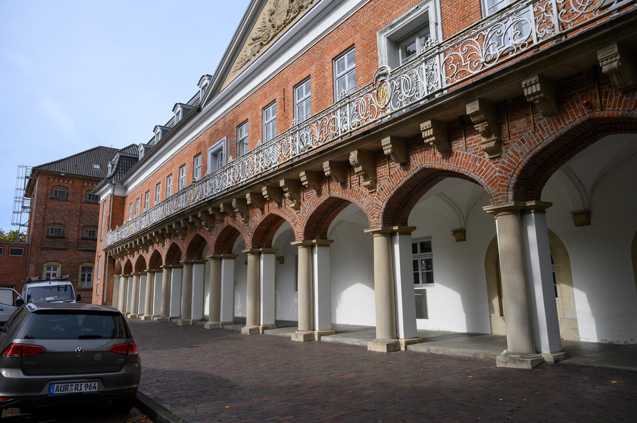 Wir haben bis zum Mittag gewartet bis sich der Nebel gelichtet hatte und sogar einige Sonnenstrahlen herauskamen. Wir haben vorbei am Schloss wieder einen Spaziergang durch die Altstadt gemacht. Dabei habe ich mir die Jacke gekauft, die mir gestern schon angenehm aufgefallen war. Heute habe ich sie mir gekauft. In der Touristeninfo haben wir uns eine Gästekarte ausfertigen lassen, weil sie nichts kostet, man aber bei verschiedenen Sachen Rabatt bekommt. Außerdem haben wir für Sonnabend eine Schifffahrt auf dem Ems-Jade-Kanal gebucht. Zurück durch die Fußgängerzone, die wir recht gut finden, waren wir noch kurz im EDEKA, bevor wir dann am Womo unseren Spaziergang beendet haben.