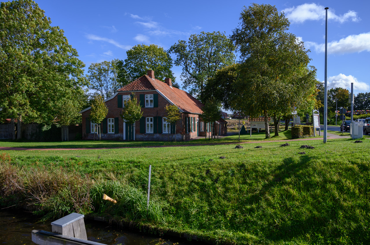 Ich habe nach dem Kaffeetrinken noch einen Spaziergang gemacht. Den Jade-Ems-Kanal in Richtung Osten und dann über Kirchdorf wieder zurück. Schöne Natur und viele schöne Einfamilienhäuser.