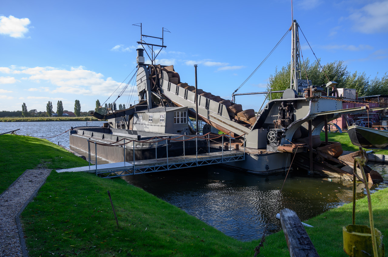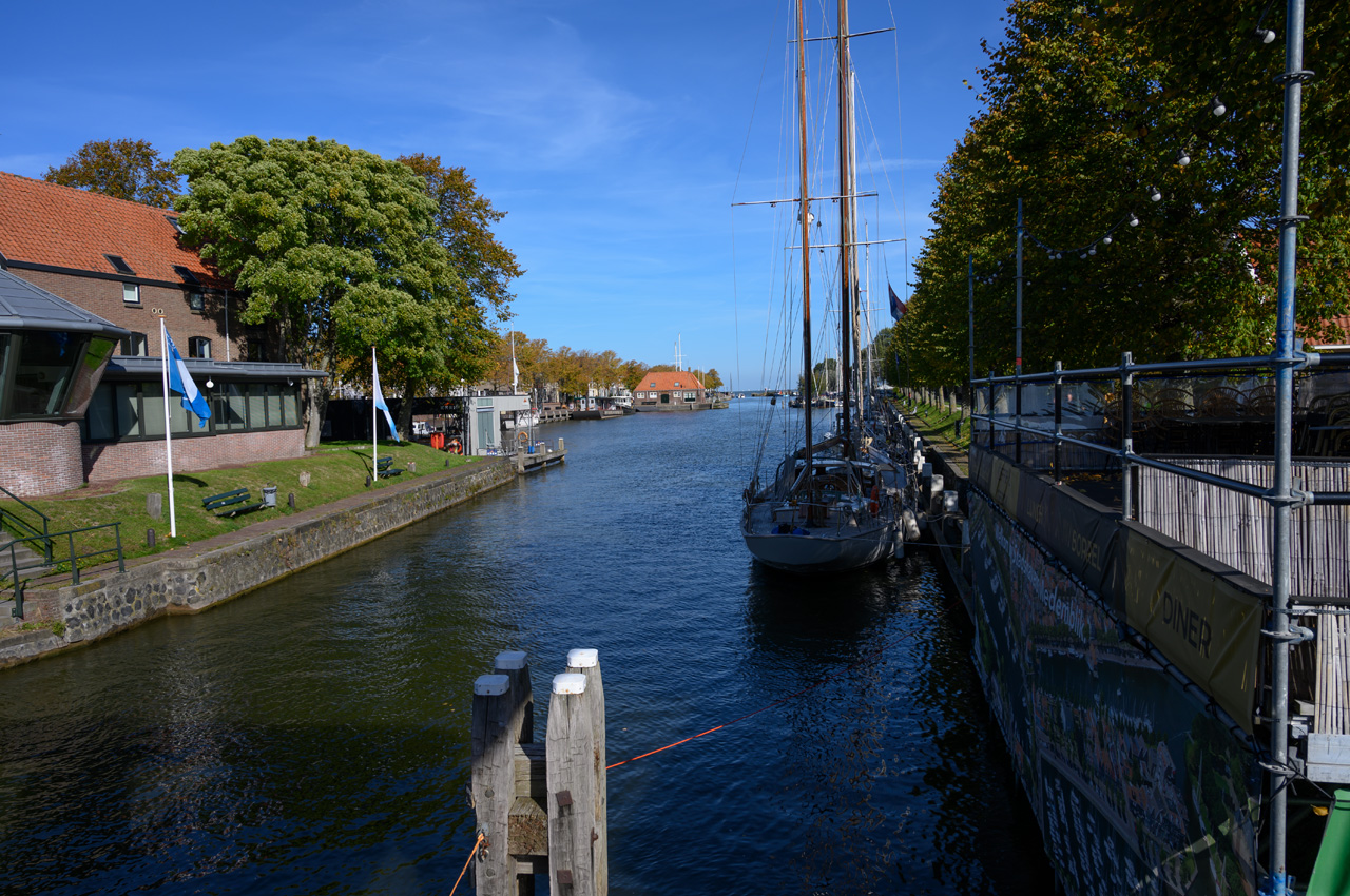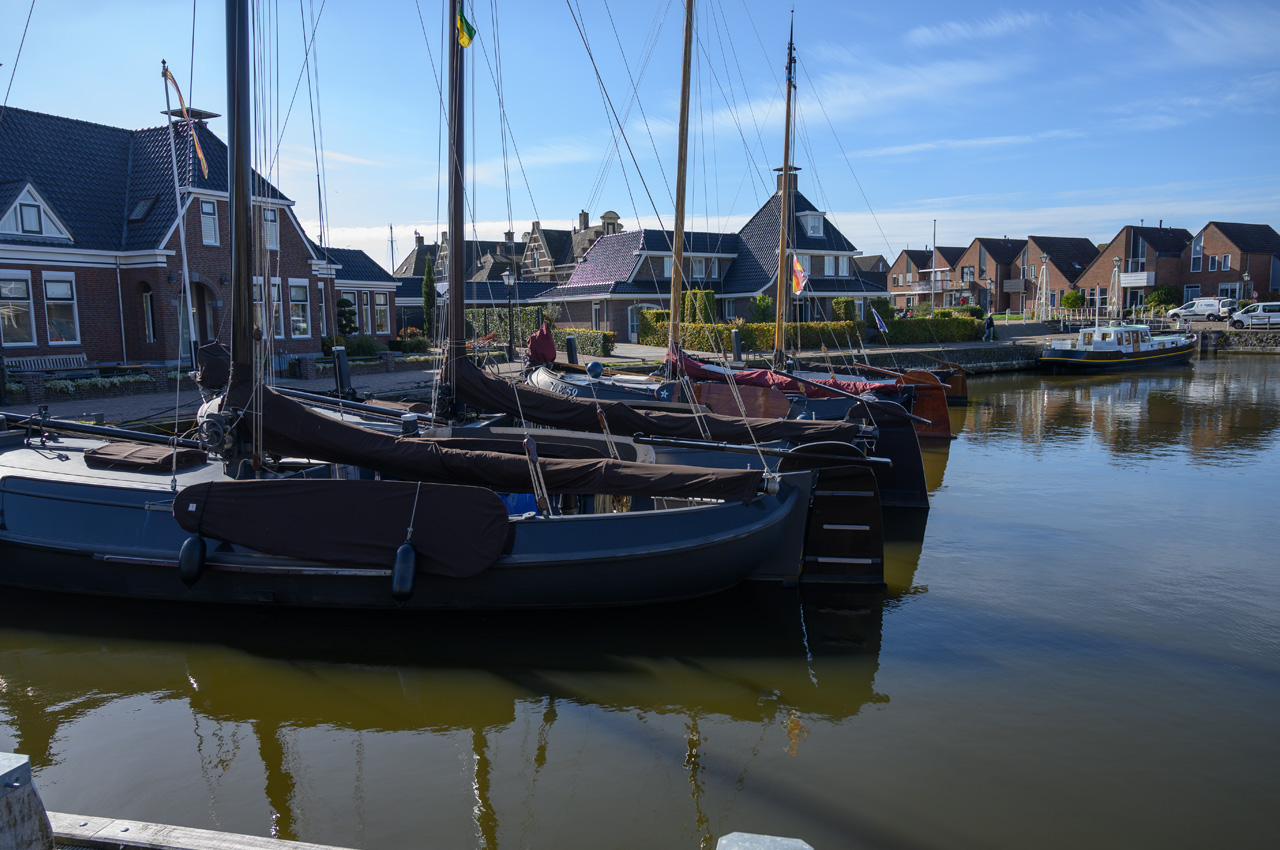 Gegen Mittag sind wir zu einem Spaziergang aufgebrochen. Wir sind einmal um den großen Yachthafen herum gelaufen und haben den hinteren Stellplatz besichtigt. Dort steht man auch mit Blick auf die Lauwersog. Die Sanitäreinrichtungen sind sehr modern und schon eher luxoriös. Der Preis ist im Normalbereich. Leider konnte ich nicht herausbekommen wie die Stromanschlüsse abgesichert sind. Von dem Yachthafen aus sind wir weiter gelaufen zu der Wochenendsiedlung. Dort gibt es einen kleinen Supermarkt. In dem hat Susanne Zimt gekauft, um aus den Äpfeln aus Gelldorf Apfelmus zu machen. Dabei haben wir erfahren, dass er ab Mitte Oktober für immer schließt. Der Besitzer hat wohl ein eher gestörtes Verhältnis zu den Betreibern der Wochenendsiedlung. Am Zugang zu der Wochendsiedlung haben wir entdeckt, dass die Wochenendhäuser auch vom Betreiber der Anlage vertrieben werden. Die Häuser haben ein fahrbares Untergestell und können transport werden. Es gab auch eine Ausstellung mit offenen Häusern. Der Preis der angebotenen Häuser lag je nach Ausstattung zwischen 50 bis 70 tausend Euro. Wir kamen richtig ins Schwärmen, weil uns die Innenausstattung sehr gut gefiel. Nach der Besichtigung waren wir noch in dem Museumshafen bevor es zu unserem Womo zurück ging.