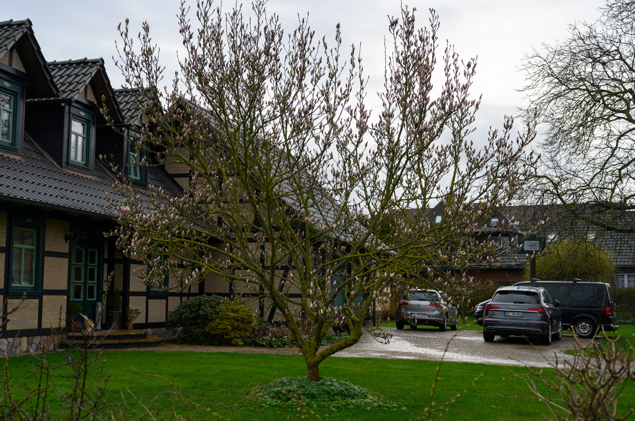 Nach einem Kaffee und meinem obligatorischen Wienerle haben wir einen Spaziergang in die Innenstadt von Tönning gemacht. Wir waren ja schon zweimal am Eiderstauwerk, aber den Ort selbst kennen wir noch nicht. Wir haben nur den Weg zu einem Bäcker erkundet und waren in der Touristeninfo. Mit einer kleinen Schleife durch den Stadthafen sind wir wieder zurück zum Womo. Der kleine Ort hat uns gefallen, er hat so das typisch nordische Flair und es gibt noch viele historische Häuser. In dem ehemaligen Schlosspark blühen z. Zt. die Kroküsse. Das ist einfach eine beeindruckende Farbenpracht.