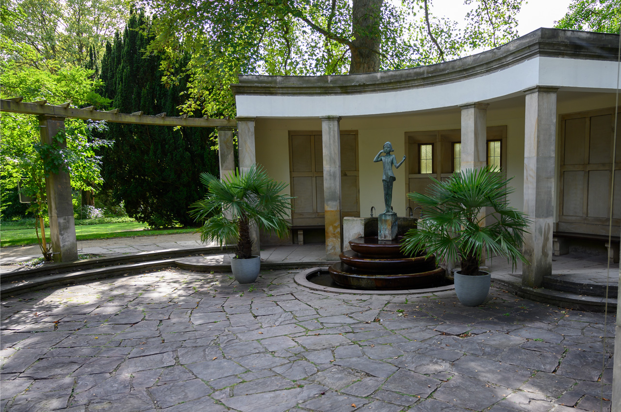 Nach unserem Zwischenkaffee habe ich mich zu einer ersten Stadtbesichtigung aufgemacht. Ich bin die Hauptallee durchgelaufen bis zum Brunnenplatz. Dort war ich in der Wandelhalle Hyllige Born. Etwas bergauf, war ich dann in der Christuskirche. Zurück wieder über die Haupthalle bis zum Zugang zum Kurpark. Dort hatte ich freien Eintritt durch unsere gerade erworbene Kurkarte. Der Park ist sehr mondän und teilt sich in einen englischen Landschaftspark und einen tropischen Palmengarten mit mehreren Springbrunnenanlagen. Der Palmengarten hat diverse Palmen, die mehr als 5 Meter hoch sind. Durch die vielen Springbrunnen und die gute Gartengestaltung ist es eine sehr romantische Ecke. An einigen Stellen des Parkes würde ich mir etwas mehr Pflege vorstellen können.