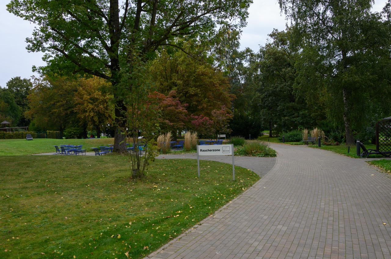 Gegen Mittag sind wir mit dem NIU zum Kurpark gefahren. Das war etwas abenteuerlich, weil der Modus Schalter nicht reagierte. Ich konnte nur in der Stufe 1 fahren, was mit zwei Personen sehr abenteuerlich ist. Er fährt da nur max. 25 km/h und es dauert, bis er so in Bewegung kommt. Der Spaziergang durch den schönen Kurpark war Susannes erster ohne Krücken. Wir haben immer mal wieder eine Sitzpause eingelegt und ich habe für die Video-Aufnahmen eine etwas größere Biege genommen. Immerhin hatte Susanne mehr als tausend Schritte auf ihrer Fitnesuhr. Vom Kurpark aus sind wir erst mal zurück zum Womo, weil ich das Problem mit dem Modus Schalter lösen wollte.