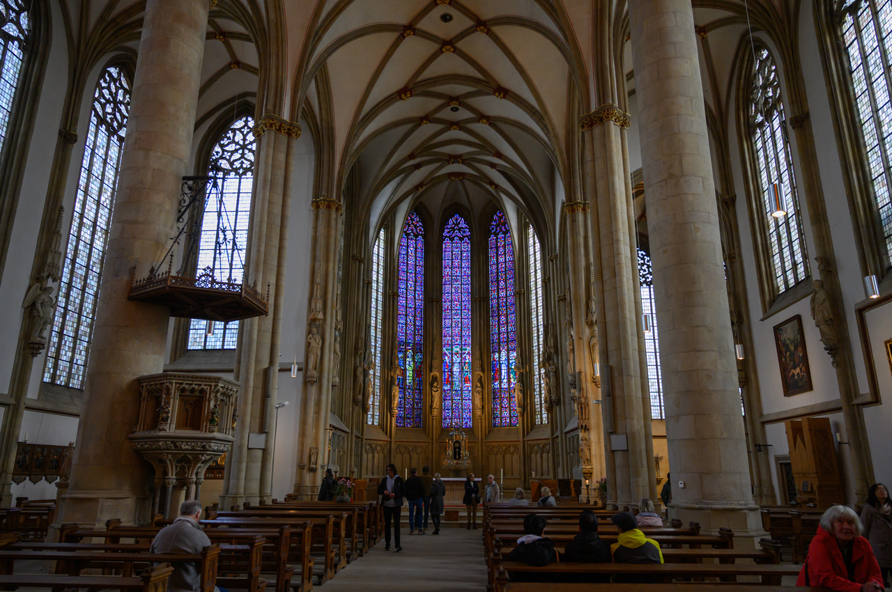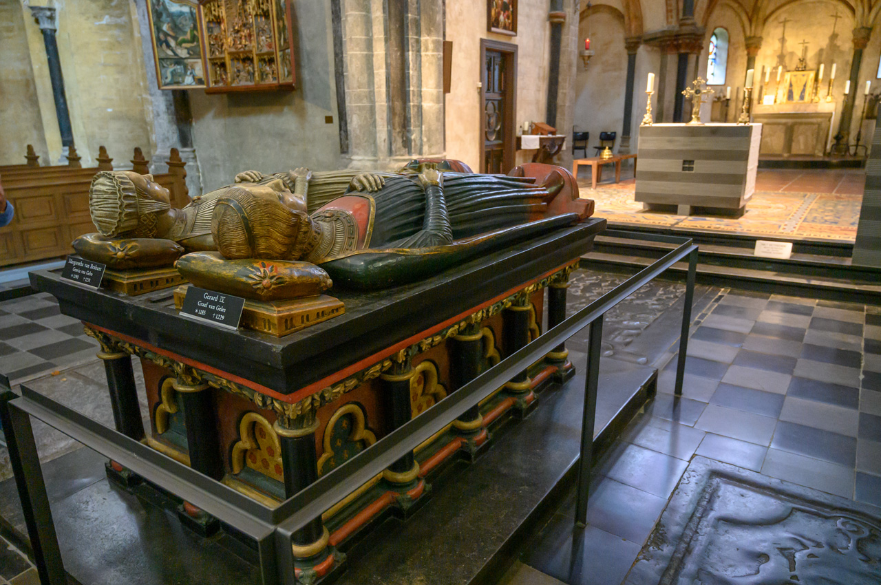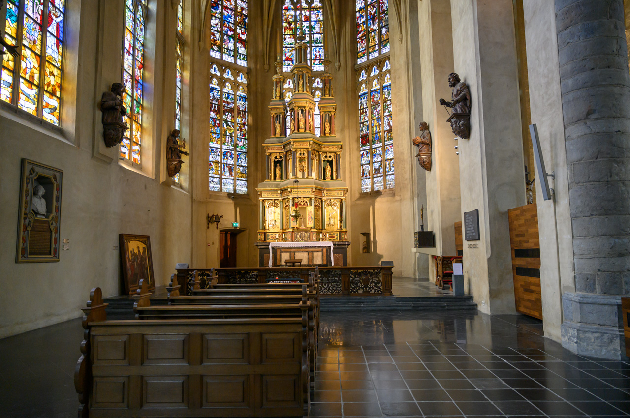 Wir sind mit dem NIU in das Altstadtzentrum von Roermond gefahren und haben unseren NIU bei der Kathedrale von Roermond abgestellt. Die Kirche haben wir uns gemeinsam nur von außen angesehen, da sie erst um 14:00 Uhr für Besuche öffnet. Ich bin etwas später alleine nochmal hier gewesen. Eine sehr interessante Kirche mit einem Architekturmix zwischen romanisch und gothisch. Beginnend mit dem Marktplatz und dem imposanten Rathaus, sind wir im Wesentlichen der Monumentenroute gefolgt. Susanne war ausgesprochen Lauflustig und bis auf wenige Abkürzungen haben wir tatsächlich die gesamte Route mit fast 3 km Länge geschafft. Am Marktplatz angekommen, hat Susanne eine kleine Pause eingelegt. Ich bin noch mals zurück zur Münsterkirche gelaufen, weil bei unserem Rundgang die Kirche noch nicht geöffnet hatte. Diese Kirche ist sehr sehenswert, ist sie doch vordergündig noch im romanischen Stil erbaut. Im Inneren gibt es aber auch gothische Züge und reichlich historische Ausstattung. Zurück am Marktplatz bin ich dann zusammen mit Susanne in die Kathedrale gegangen, auch diese Kirche ist sehr sehenswert. Es ist eine Basilika mit einem Querschiff und mehreren großen Altären. Die Stadt selbst ist genau unsere Kragenweite mit den vielen historischen Gebäuden mit dem typischen niederländischen Baustil des ausgehenden Mittelalters.