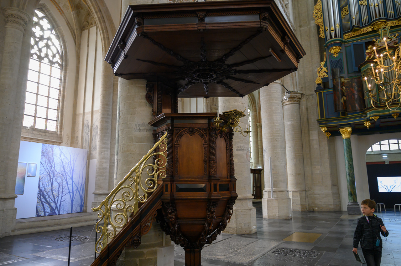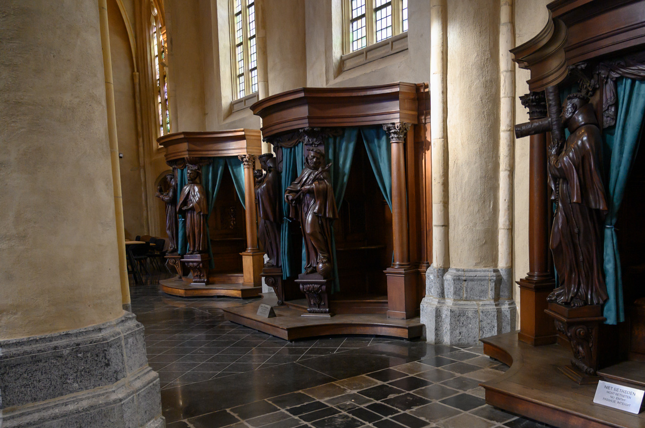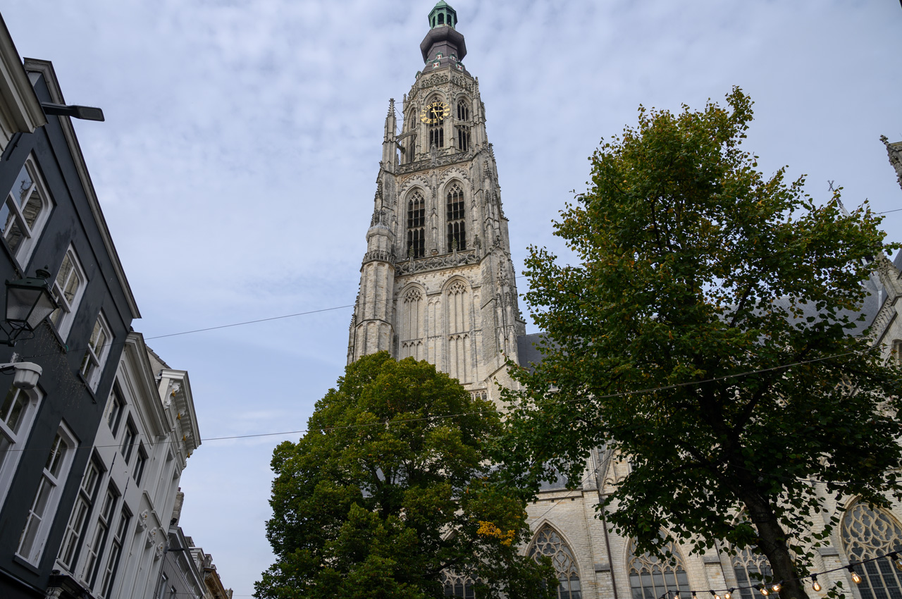 Gegen 12:00 Uhr sind wir auf unseren NIU gestiegen und Richtung Breda gestartet. Als Ziel habe ich Ginneken Stadshus eingegeben, in dem guten Glauben, dass das das Rathaus von Breda ist. Wir waren ziemlich enttäuscht, weil wir dort glaubten am Marktplatz zu sein und fanden das alles ziemlich mager für die gelobte Stadt Breda. Unser Navi hat uns ein Wasserschloss angeboten. Da ich nichts besseres wusste, habe ich das gewählt. Wir landeten beim Franse Tuin - Landgoed Bouvigne. Das Schloss kann man nicht besichtigen, aber den schönen Garten kann man ansehen. Der Zugang ist über ein modernes Gebäude der Waterschap Brabantse Delta, eine Unternehmung, die für Schmutzwasserregenerierung in Brabant zuständig ist. Der Park war sehr schön, aber auch nicht unbedingt die Lösung für Susannes kaputten Fuß. Als wir wieder mit dem NIU weiter wollten, habe ich auf dem Navi das eigentliche Rathaus von Breda entdeckt. Jetzt erst habe ich realisiert, das wir bis jetzt gar nicht im Zentrum bzw. der Altstadt von Breda waren. Die liegt mehr als 2 km nördlich von dem Stadtteil Ginneken, wo wir uns herumgetrieben haben. Jetzt führte uns das Navi endlich zum großen Markt und der ist der Mittelpunkt der Altstadt von Breda. Dort haben wir unseren NIU stehen lassen und haben als erstes die Onze-Lieve-Vrouwekerk besichtigt. Dafür mussten wir 4,-€ Eintritt pro Person zahlen. Die Kirche wir dals Kirche nur noch im Chor betrieben, der Rest ist Ausstellungsraum. Die Kirche enthält viele Grabgelege unter anderem die der Grafen zu Nassau. Nach der Kirchenbesichtigung haben wir noch eine Runde um den Kirchplatz und den Marktplatz gedreht. In der Kirche hatten wir erfahren, dass Breda keine Touristeninfo mehr hat. Einen Stadtplan haben wir in der Kirche erhalten. Susanne hat wieder tapfer durchgehalten.