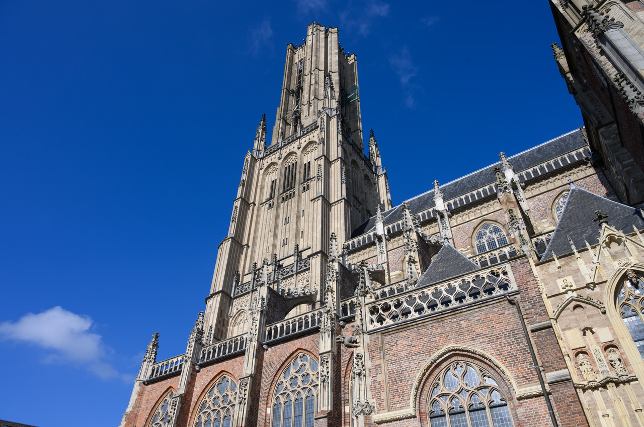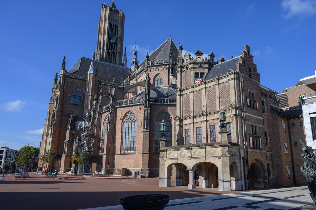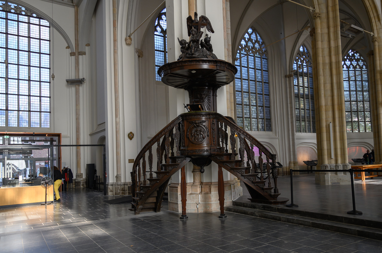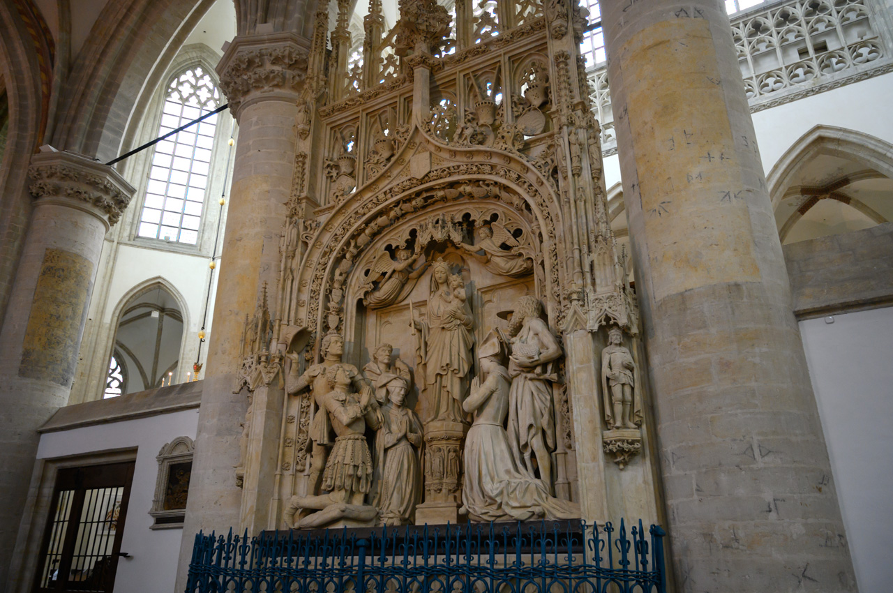 Gegen 12:00 Uhr sind wir auf unseren NIU gestiegen und Richtung Breda gestartet. Als Ziel habe ich Ginneken Stadshus eingegeben, in dem guten Glauben, dass das das Rathaus von Breda ist. Wir waren ziemlich enttäuscht, weil wir dort glaubten am Marktplatz zu sein und fanden das alles ziemlich mager für die gelobte Stadt Breda. Unser Navi hat uns ein Wasserschloss angeboten. Da ich nichts besseres wusste, habe ich das gewählt. Wir landeten beim Franse Tuin - Landgoed Bouvigne. Das Schloss kann man nicht besichtigen, aber den schönen Garten kann man ansehen. Der Zugang ist über ein modernes Gebäude der Waterschap Brabantse Delta, eine Unternehmung, die für Schmutzwasserregenerierung in Brabant zuständig ist. Der Park war sehr schön, aber auch nicht unbedingt die Lösung für Susannes kaputten Fuß. Als wir wieder mit dem NIU weiter wollten, habe ich auf dem Navi das eigentliche Rathaus von Breda entdeckt. Jetzt erst habe ich realisiert, das wir bis jetzt gar nicht im Zentrum bzw. der Altstadt von Breda waren. Die liegt mehr als 2 km nördlich von dem Stadtteil Ginneken, wo wir uns herumgetrieben haben. Jetzt führte uns das Navi endlich zum großen Markt und der ist der Mittelpunkt der Altstadt von Breda. Dort haben wir unseren NIU stehen lassen und haben als erstes die Onze-Lieve-Vrouwekerk besichtigt. Dafür mussten wir 4,-€ Eintritt pro Person zahlen. Die Kirche wir dals Kirche nur noch im Chor betrieben, der Rest ist Ausstellungsraum. Die Kirche enthält viele Grabgelege unter anderem die der Grafen zu Nassau. Nach der Kirchenbesichtigung haben wir noch eine Runde um den Kirchplatz und den Marktplatz gedreht. In der Kirche hatten wir erfahren, dass Breda keine Touristeninfo mehr hat. Einen Stadtplan haben wir in der Kirche erhalten. Susanne hat wieder tapfer durchgehalten.