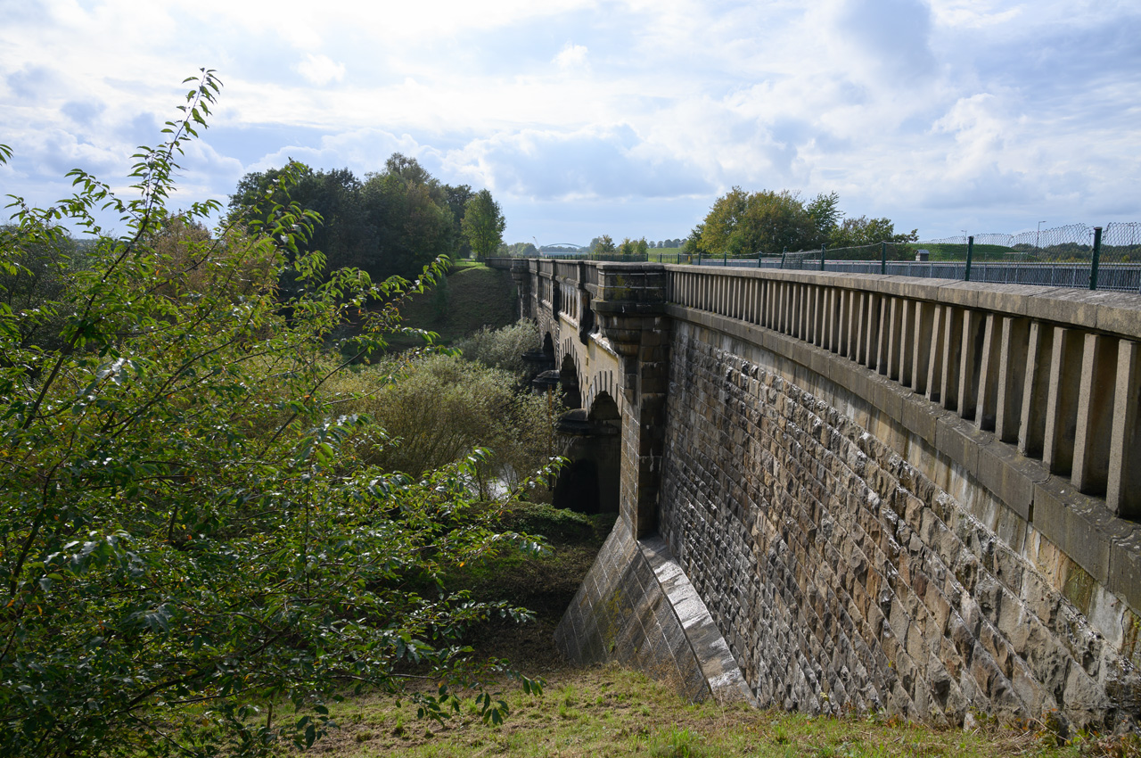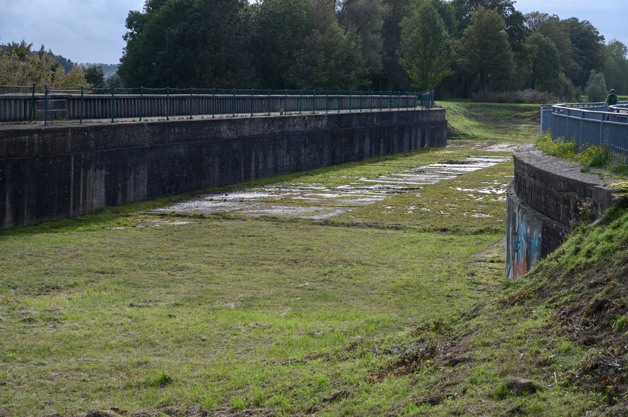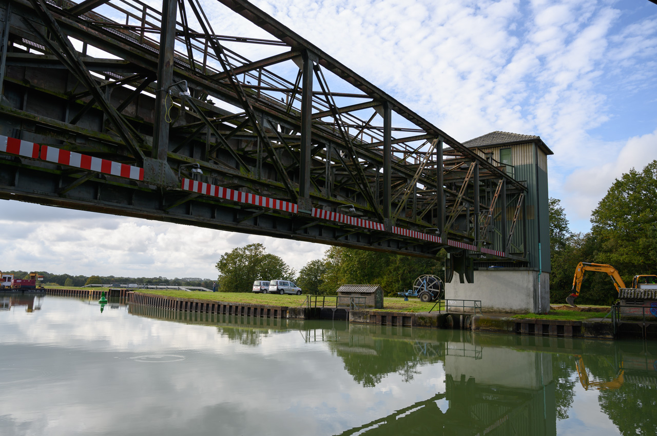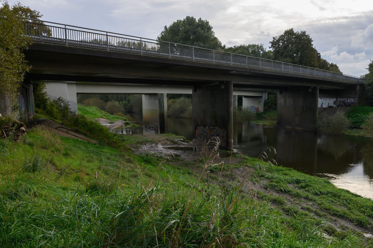 Ich habe am Nachmittag noch einen Spaziergang gemacht zu dem großen Wasserbauprojekt, was in der Nähe des Stellplatzes sich gerade abspielt. Der Dortmund-Ems-Kanal überquert hier in ca. 15 Meter Höhe die Ems in einer Trogbrücke. Die erste Fahrt ist schon seit 1936 außer Betrieb. Ein Teil davon ist der heutige Yachthafen. Für moderne Großraumbinnenschiffe ist aber jetzt auch die 1936 in Betrieb gegangene neue Trogbrücke zu klein. Bis 2030 soll nun eine neue Kanalbrücke mit zwei Trögen erbaut werden. Dazu hat man in diesem Jahr eine Umfahrung in Betrieb genommen. Ich war natürlich neugierig wie das alles vor Ort aussieht. Das Fotografieren der ersten Trogbrücke, eine absolute Top Ingenieursleistung, war gar nicht so einfach. Ich musste einen steilen Hang runter zur Ems klettern. Die historische Brücke ist eine Viaduktbauweise und steht unter Denkmalschutz. Leider hat sie die Natur schon ganz schön zurück erobert. Sträucher und Bäume verdecken die Sicht.