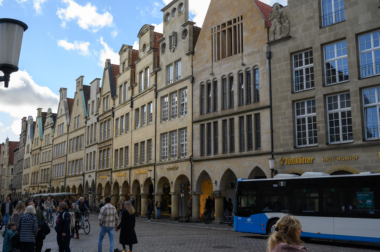 Die Nacht über hat es, nur mit wenigen Pausen, wieder komplett durchgeregnet. Ich habe sicherheitshalber zu den bestellten Brötchen noch drei weitere gekauft, falls es heute auch nichts wird mit unserem Ausflug nach Münster. Sicher ist sicher. Der Wetterbericht prognostizierte aber ab Mittag trockenes Wetter, sogar mit etwas Sonnenschein.