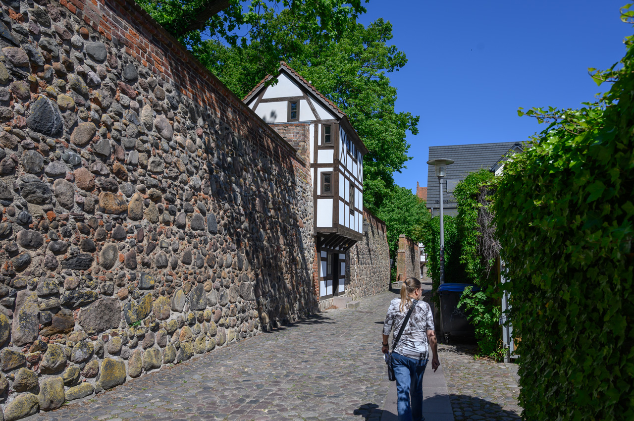 Am Vormittag sind wir in Richtung Innenstadt gelaufen. Unser erstes Ziel war das ehemalige Kloster. Es hat eine sehr bewegte Geschichte mit vielen Veränderungen. Heute existieren nur noch Fragmente der einstigen Anlage. Dominierend ist das das Gebäude der ehemaligen Propstei durch seinen wuchtigen Stufengiebel im gotischen Stiel. Die St. Marien Kirche wird z. Zt. saniert und ist nicht zugänglich. Vom Kloster aus sind wir zum Marktplatz gelaufen und von da aus zum Neumarkt, wo sich das Rathaus befindet. Im Rathaus ist auch eine Touristeninfo, die zwar unbesetzt war, aber alles Infomaterial war frei zugänglich. Ein kleines Stück weiter haben wir ein ALDI gefunden. Hier haben wir unseren Obstvorrat ergänzt. Zurück ging es entlang der Hauptstraße zum Reha-Zentrum für Blinde und gleich daneben zur Förderschule für Blinde. Beides befindet sich in alterwürdigen Backsteingebäuden. Wenn auch die Stadt nicht unbedingt viel zu bieten hat, wir hatten einen schönen Spaziergang bei sehr angenehmen Wetter mit Sonnenschein und 21°C Lufttemperatur.