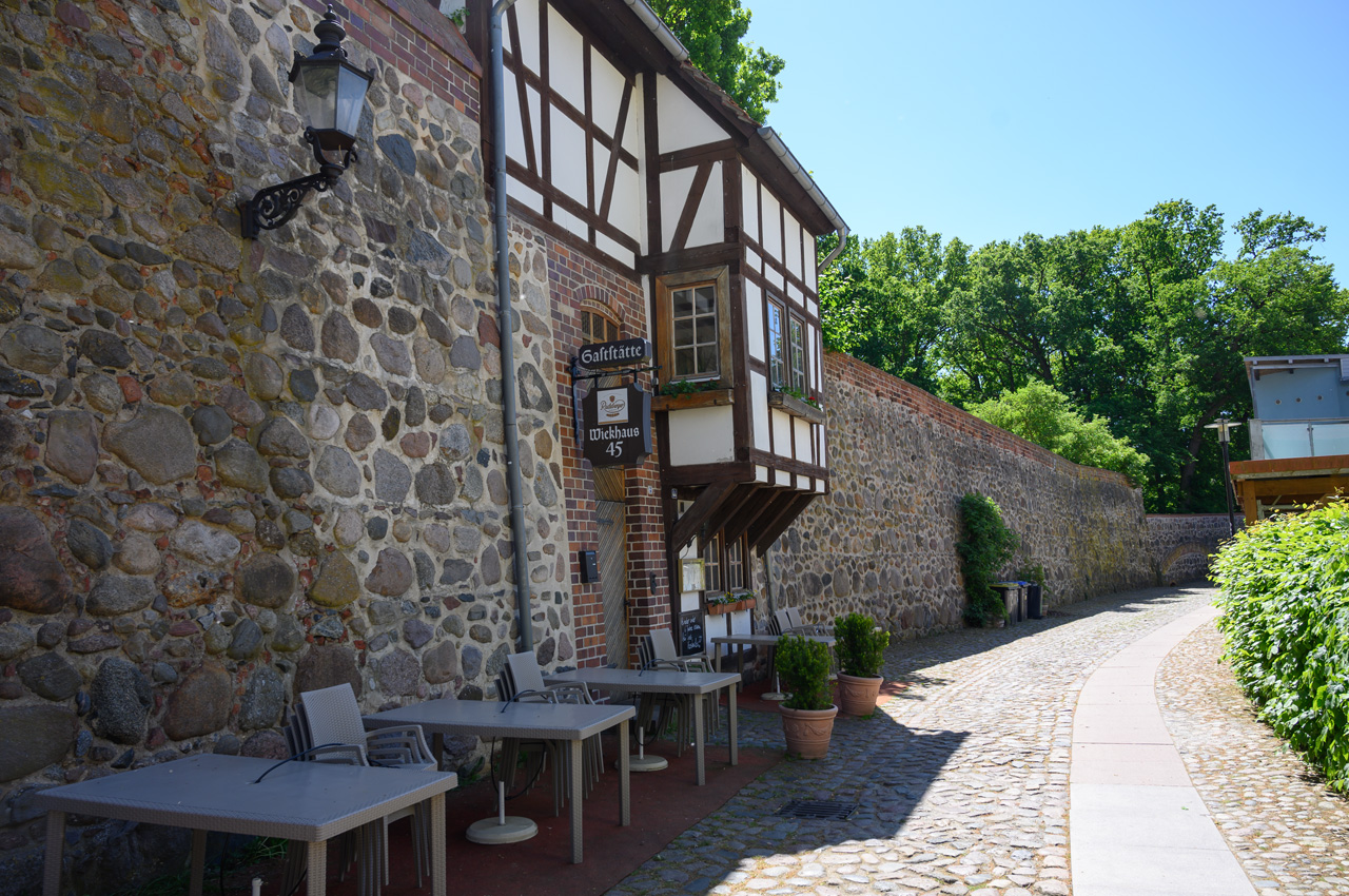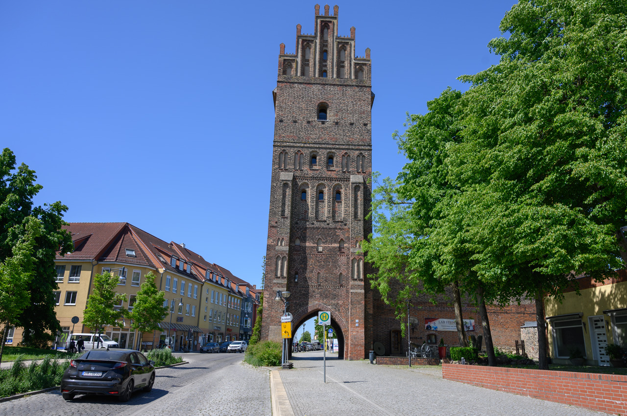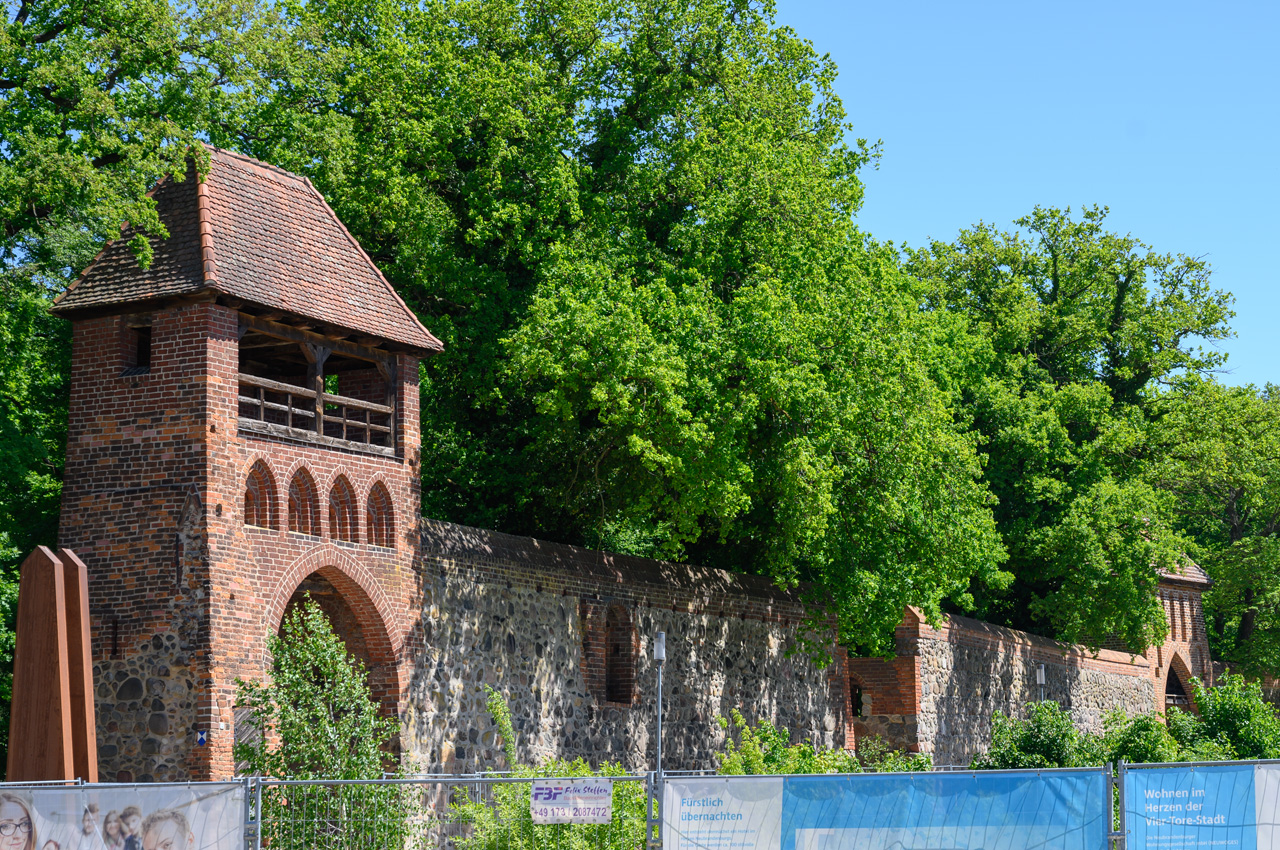 Kurz nach dem Frühstück habe ich den NIU aus der Garage geholt und ihn startklar gemacht. Wir sind mit ihm bis in die Altstadt gefahren. Dort haben wir ihn gleich hinter dem Stargarder Tor abgestellt und sind an der Stadtmauer entlangspaziert. Die Stadtmauer ist tatsächlich nur noch eine Mauer. Ihr fehlt der hölzerne Wehrgang. Die Bebauung entlang der Stadtmauer stammt nicht mehr aus historischer Zeit. Sie müsste dem Baustil nach sogar aus der Zeit nach der Wende stammen. Sehr modern und neuzeitlich. Die Gebäude sind alle in einem tadellosen Zustand. In die Stadtmauer selbst hat man ebenfalls aus neuerer Zeit kleine Häuser im historischen Stiel eingebaut. Sie haben alle ausnahmslos Fachwerk. Das ist sehr gut, denn das lockert die ansonsten eher kahle und damit langweilige Mauer auf. Bei dem ehemaligen Franziskanerkloster sind wir in Richtung Marktplatz gelaufen, also etwas weg von der Stadtmauer. Vorher haben wir aber die offene Sankt Johannis Kirche besichtigt. Sie ist eine schlichte, evangelische Kirche mit einer starken Farbgebung der Pfeiler. Der Chorraum wirkt sehr duster und für das Kirchenschiff etwas zu klein geraten. Das direkt daneben befindliche Museum Neubrandenburg hat montags und dienstags Ruhetag. Allerdings wären wir bei dem schönen Wetter ohnehin nicht in das Museum gegangen. In dem Marktplatzcenter hat sich Susanne bei Deichmann für den Sommer ein Paar Schuhe von Skechers gekauft. Mit einem Schlenker eines weiteren Stückes entlang der Stadtmauer, sind wir wieder beim NIU gelandet. Bevor wir zum Womo zurückgefahren sind, haben wir im ALDI unsere Lebensmittelvorräte aufgefrischt. Am Womo wieder angekommen, stand für heute nur noch relaxen auf dem Programm. Ich habe dieses Jahr das erste Mal Mittagsschlaf draußen gemacht. In der Sonne war es schon zu warm, also habe ich die Markise ausgefahren, was auch zum ersten Mal in diesem Jahr war.
