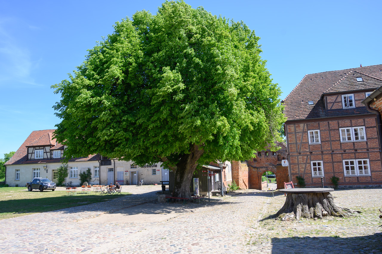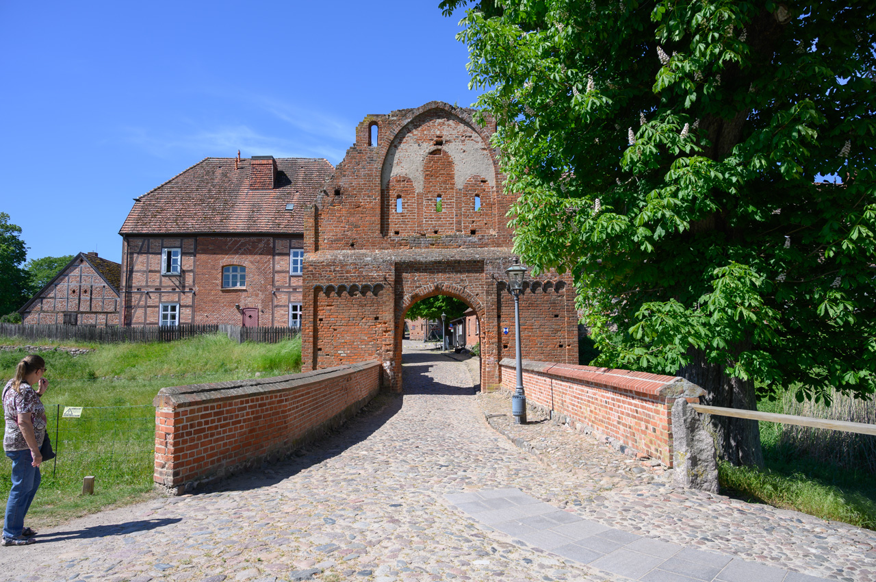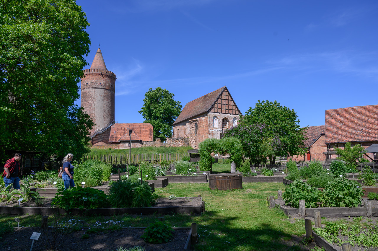 Kurz nach dem Frühstück habe ich den NIU aus der Garage geholt und ihn startklar gemacht. Wir sind mit ihm bis in die Altstadt gefahren. Dort haben wir ihn gleich hinter dem Stargarder Tor abgestellt und sind an der Stadtmauer entlangspaziert. Die Stadtmauer ist tatsächlich nur noch eine Mauer. Ihr fehlt der hölzerne Wehrgang. Die Bebauung entlang der Stadtmauer stammt nicht mehr aus historischer Zeit. Sie müsste dem Baustil nach sogar aus der Zeit nach der Wende stammen. Sehr modern und neuzeitlich. Die Gebäude sind alle in einem tadellosen Zustand. In die Stadtmauer selbst hat man ebenfalls aus neuerer Zeit kleine Häuser im historischen Stiel eingebaut. Sie haben alle ausnahmslos Fachwerk. Das ist sehr gut, denn das lockert die ansonsten eher kahle und damit langweilige Mauer auf. Bei dem ehemaligen Franziskanerkloster sind wir in Richtung Marktplatz gelaufen, also etwas weg von der Stadtmauer. Vorher haben wir aber die offene Sankt Johannis Kirche besichtigt. Sie ist eine schlichte, evangelische Kirche mit einer starken Farbgebung der Pfeiler. Der Chorraum wirkt sehr duster und für das Kirchenschiff etwas zu klein geraten. Das direkt daneben befindliche Museum Neubrandenburg hat montags und dienstags Ruhetag. Allerdings wären wir bei dem schönen Wetter ohnehin nicht in das Museum gegangen. In dem Marktplatzcenter hat sich Susanne bei Deichmann für den Sommer ein Paar Schuhe von Skechers gekauft. Mit einem Schlenker eines weiteren Stückes entlang der Stadtmauer, sind wir wieder beim NIU gelandet. Bevor wir zum Womo zurückgefahren sind, haben wir im ALDI unsere Lebensmittelvorräte aufgefrischt. Am Womo wieder angekommen, stand für heute nur noch relaxen auf dem Programm. Ich habe dieses Jahr das erste Mal Mittagsschlaf draußen gemacht. In der Sonne war es schon zu warm, also habe ich die Markise ausgefahren, was auch zum ersten Mal in diesem Jahr war.