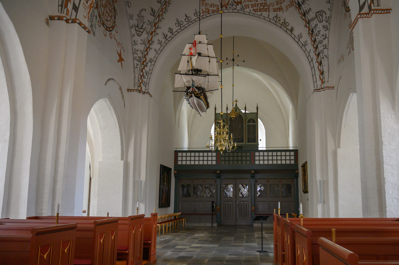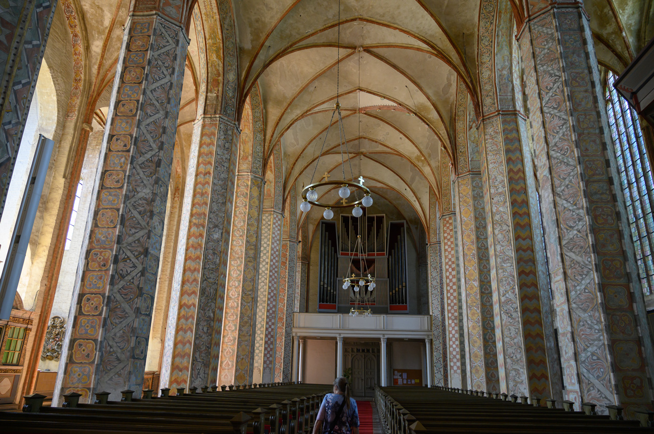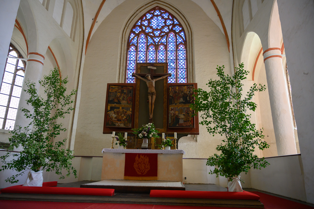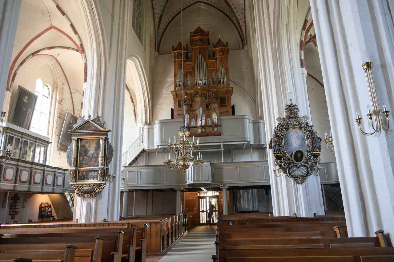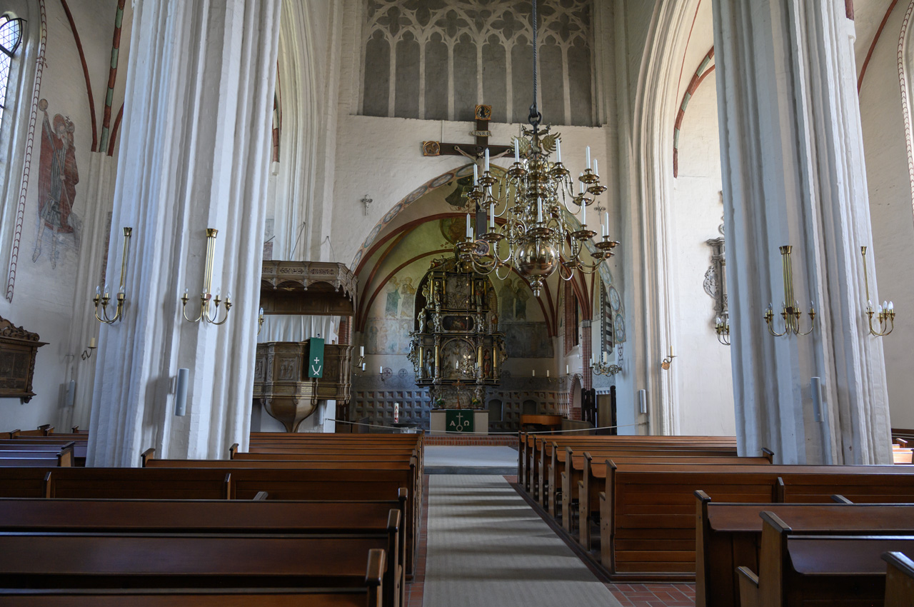 Auf dem Rückweg zum Womo haben wir noch einen Zwischenstopp in Usedom Stadt eingelegt. Hier war auch die Kirche offen. Am Vormittag fanden hier Konfirmationen statt. Die Kirche ist schlicht ausgestattet. Der Rest des Ortes stimmt ein eher depressiv. Außer uns kaum Menschen und kein offenes Café und das am Marktplatz. So etwas ist nicht schön.