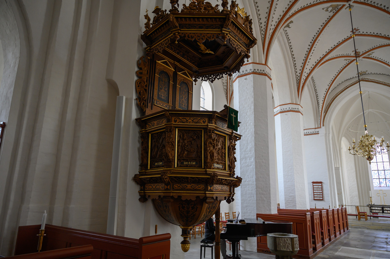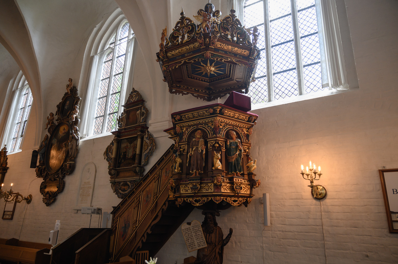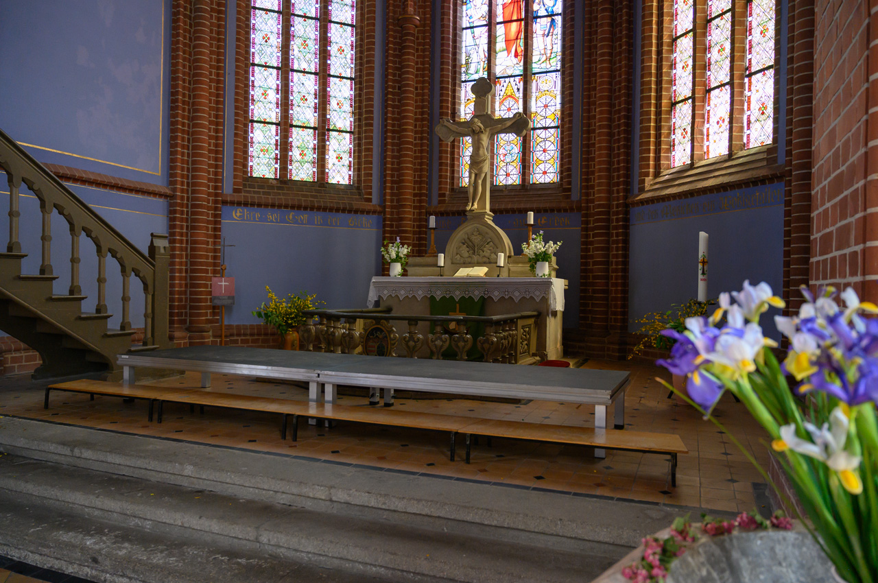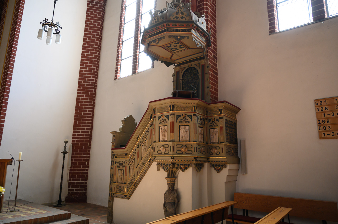 Auf dem Rückweg zum Womo haben wir noch einen Zwischenstopp in Usedom Stadt eingelegt. Hier war auch die Kirche offen. Am Vormittag fanden hier Konfirmationen statt. Die Kirche ist schlicht ausgestattet. Der Rest des Ortes stimmt ein eher depressiv. Außer uns kaum Menschen und kein offenes Café und das am Marktplatz. So etwas ist nicht schön.