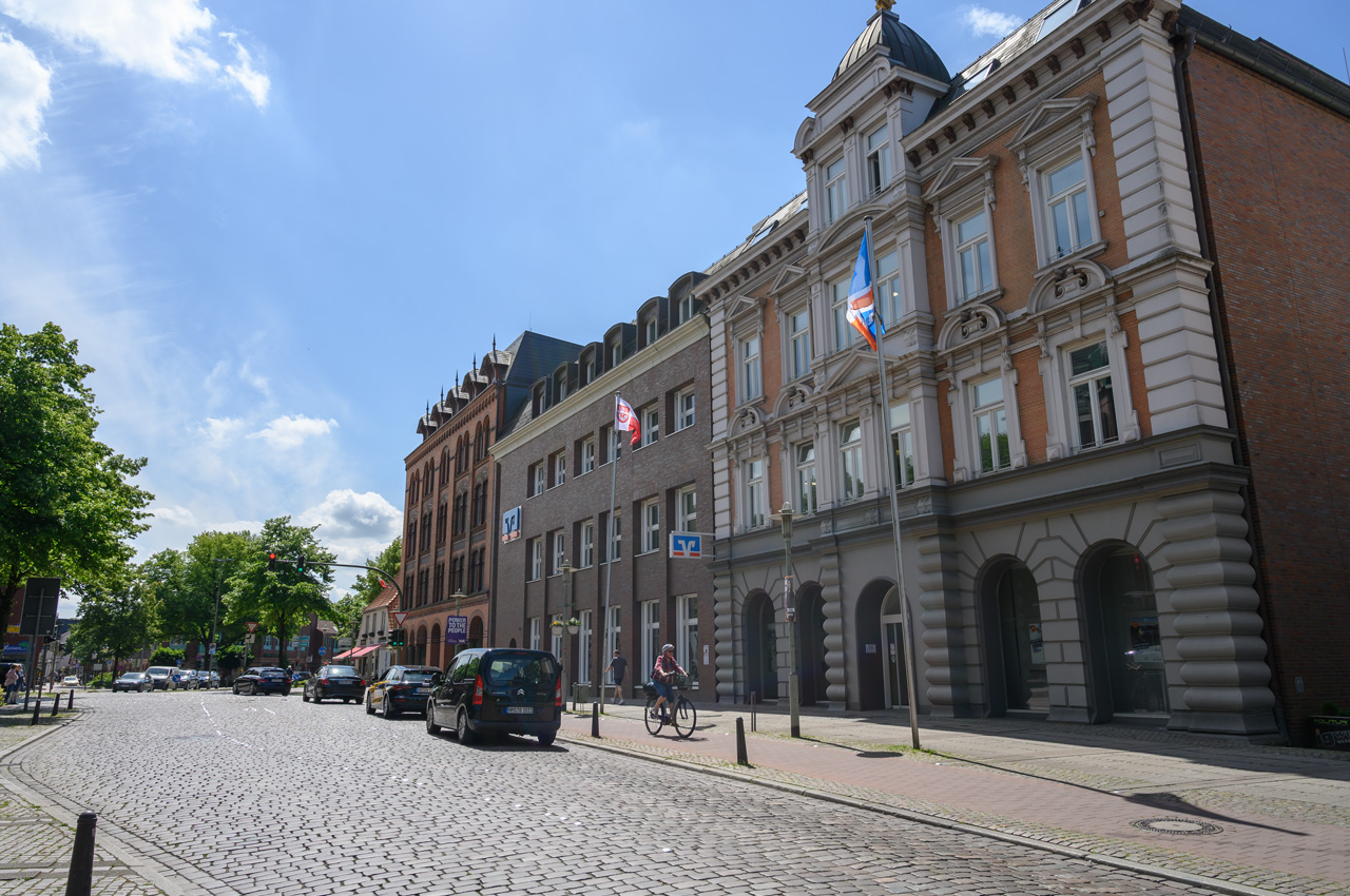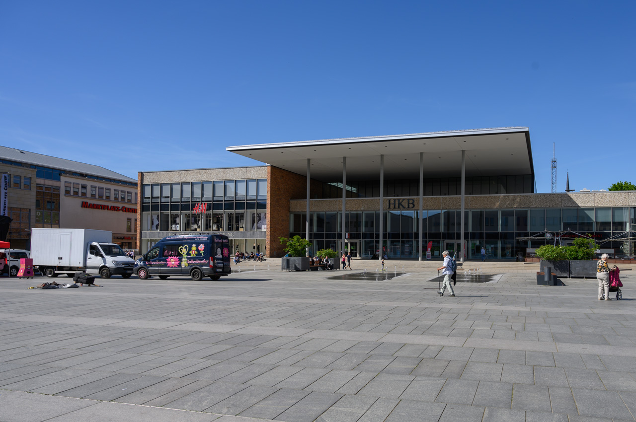 Gegen 11:30 Uhr kam die Sonne durch und für mich war das Startsignal für einen Spaziergang. Susanne wollte dafür einen Mittagsschlaf machen, sie muss noch ihr Bein schonen. Ich bin in die Innenstadt gelaufen, um mir schon mal einen Vorgeschmack für die morgen anstehende Stadtbesichtigung zu holen. Neumünster verfügt über einen riesigen Marktplatz. Obwohl es ja Sonntag ist, floriert hier das Leben. Die Gaststätten sind gut besucht und auch der Leerstand bei den Ladengeschäften hält sich in grenzen. Für den Rückweg habe ich eine etwas kürzere Route gefunden. Bei dem Haltepunkt des Schienenbusses, der ganz in der Nähe des Stellplatzes ist, habe ich mal einen Blick auf die Abfahrtszeiten geworfen. Der Schienenbus fährt wohl alle Stunde von hier ab zum Hauptbahnhof.
