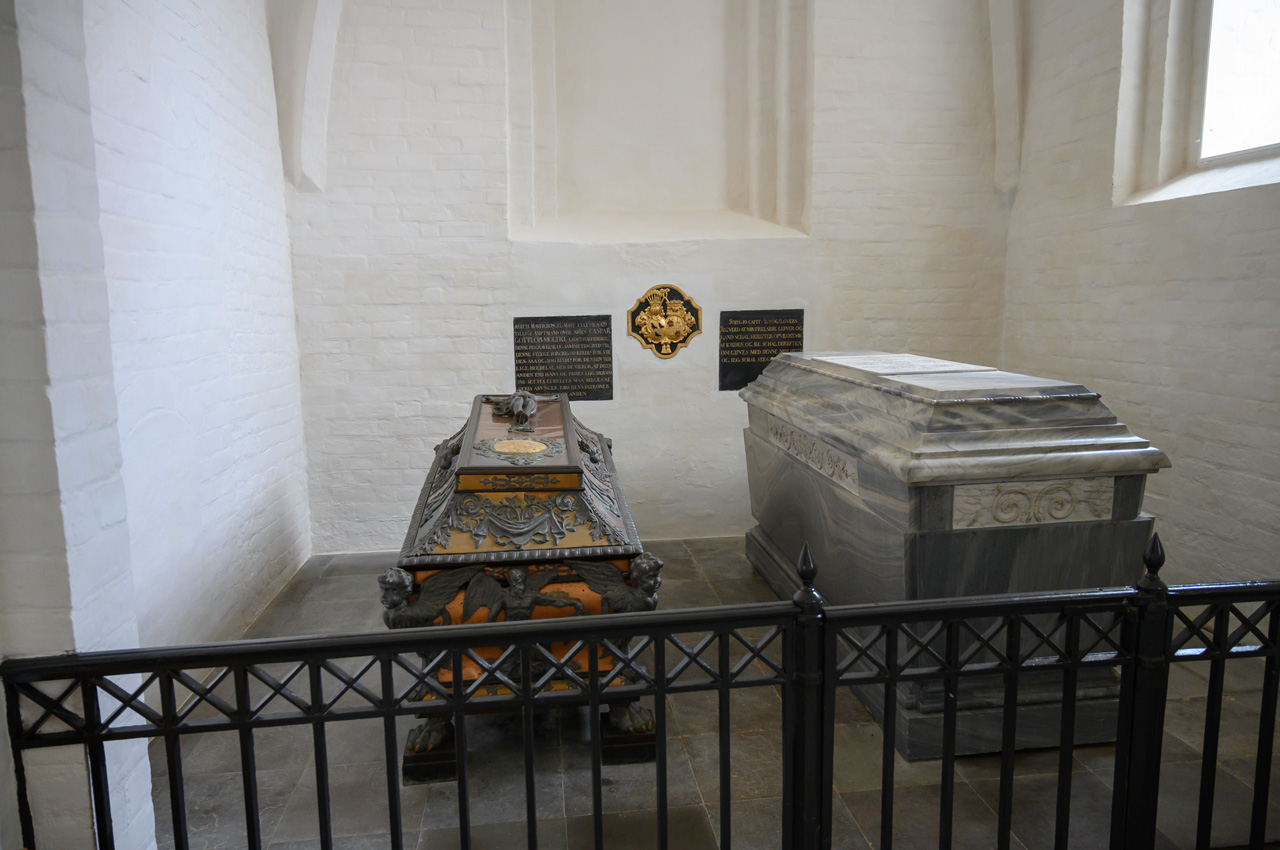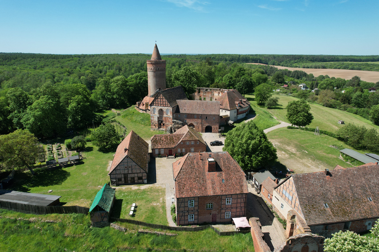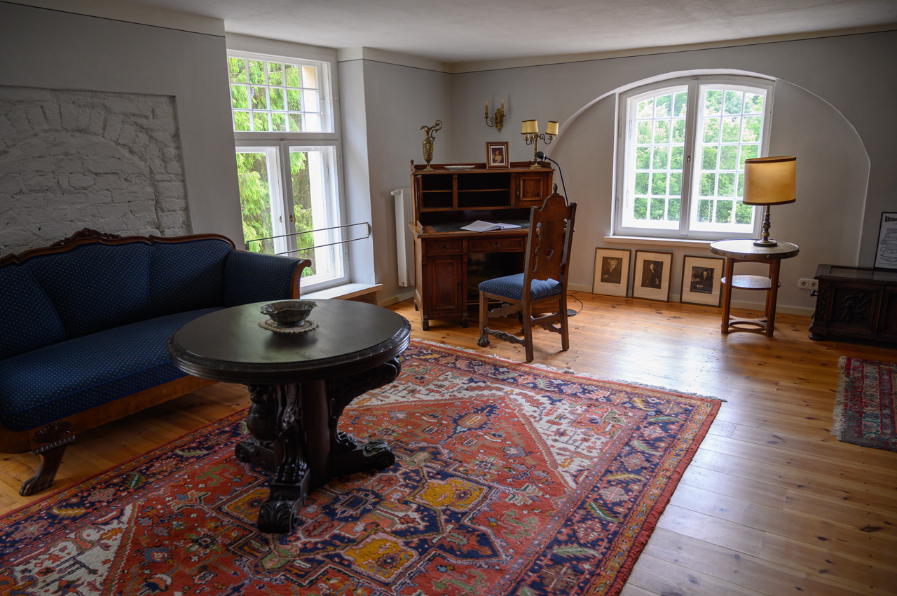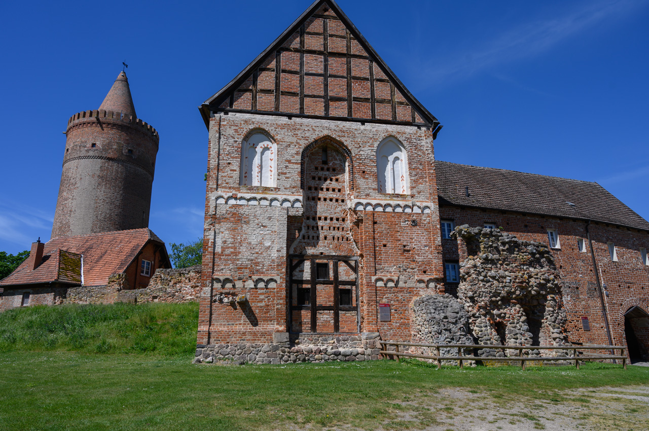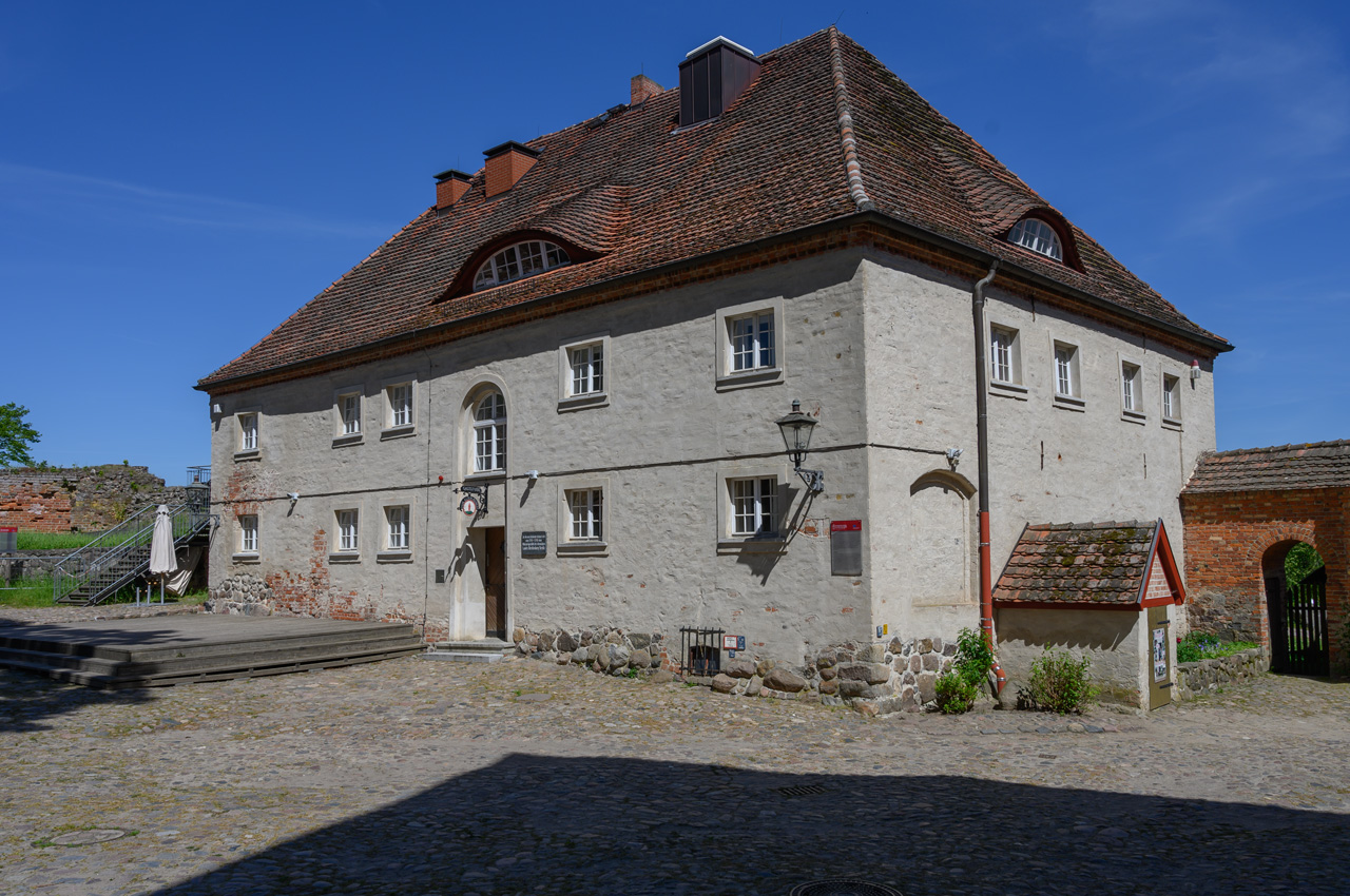 Zeitnah nach einem Kaffee habe ich den NIU startklar gemacht. Der Wetterbericht hat für heute Nachmittag hohe Regenwahrscheinlichkeit angezeigt. Unser erstes Ziel sollte das Schloss Stolpe sein. Allerdings hat uns unser Navi über Usedom Stadt geführt, was ich eigentlich nicht wollte. Wir wollten uns Usedom Stadt erst auf dem Rückweg ansehen. Das Schloss in Stolpe kann man ohne Eintritt auf eigene Faust besichtigen. Die DDR hat diesem Bauwerk böse mitgespielt. Bis zum Ende des 2. Weltkrieges bewohnte es die letzte Eigentümerin Freda Gräfin von Schwerin mit ihrer Familie. Sie wurde von den Russen kurze Hand enteignet und aus dem Schloss wurde eine Militärkommandatur. Danach hat die DDR es übernommen und dem Bau alles genommen, was ein Schloss so ausmacht aus purem Hass der Grafenfamilie gegenüber. Bis zur Wende wurde es für unterschiedliche Zwecke genutzt, aber eben nur benutzt und nicht instandgehalten. Nach der Wende war es dem Verfall preisgegeben. Erst 2001 begann ein Verein gemeinsam mit der Stadt dieses Schloss wieder herzustellen. Heute, mal abgesehen von einigen Restarbeiten, erstrahlt es wieder im altem Glanz. Es ist der Öffentlichkeit zugänglich und die Besichtigung kostet keinen Eintritt. Eine schöne Sache, dass es Menschen gibt, die sich um den Erhalt solcher historisch wertvollen Güter kümmern.