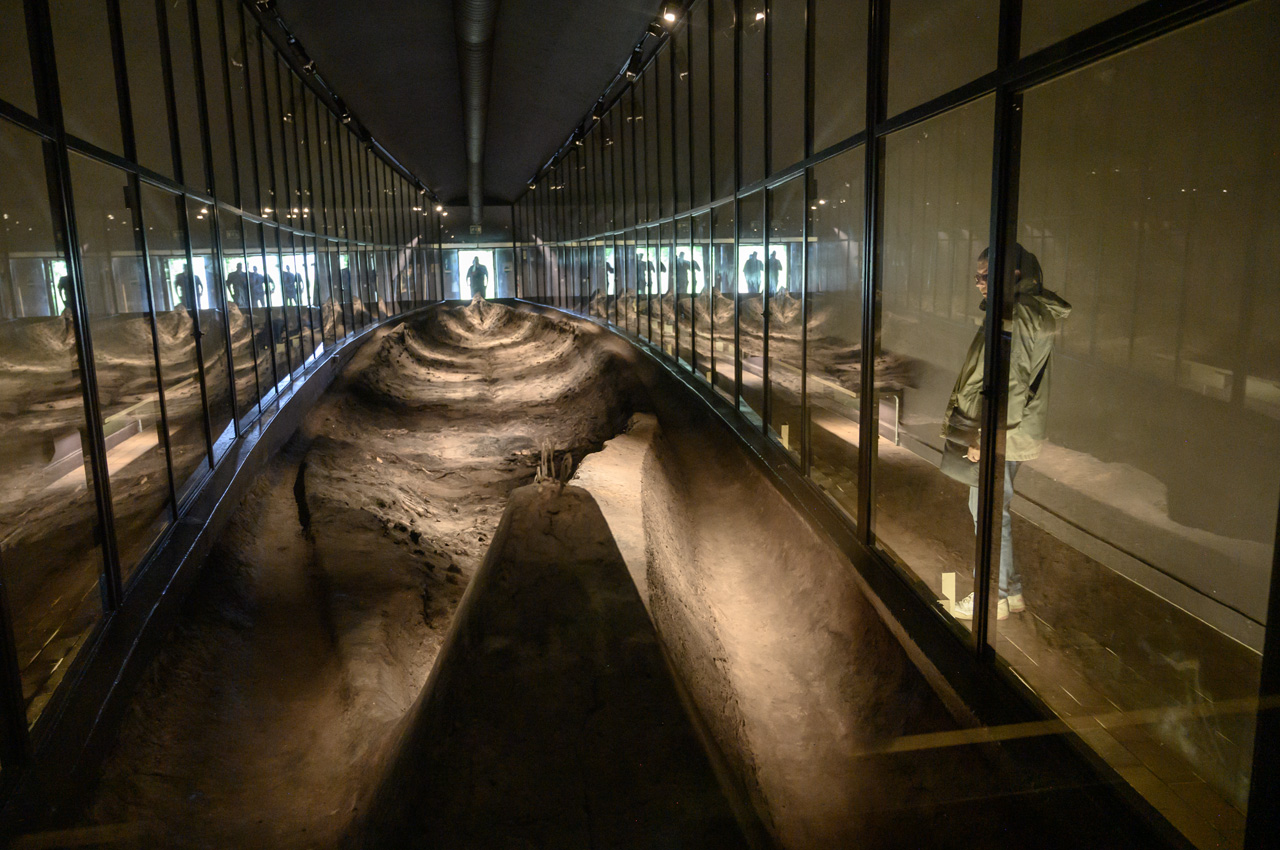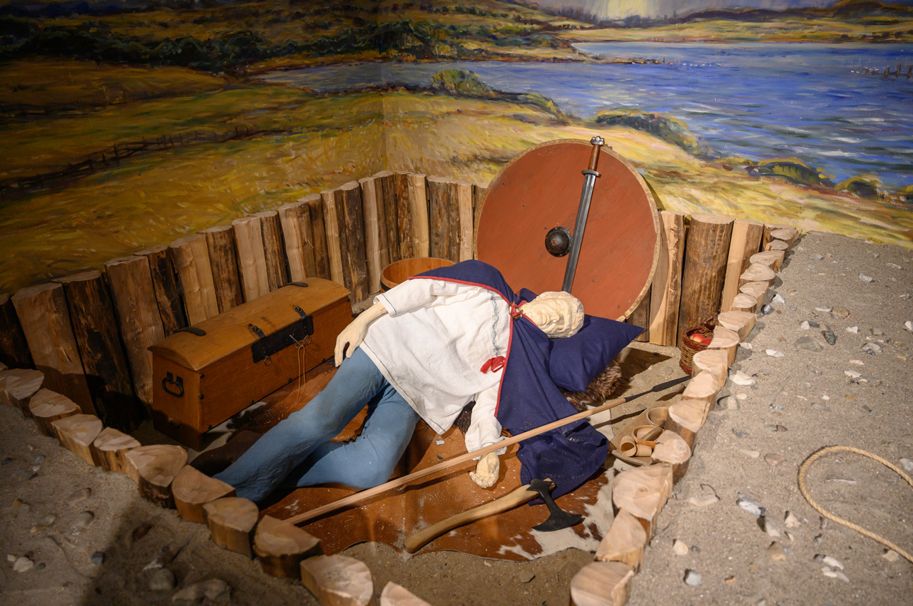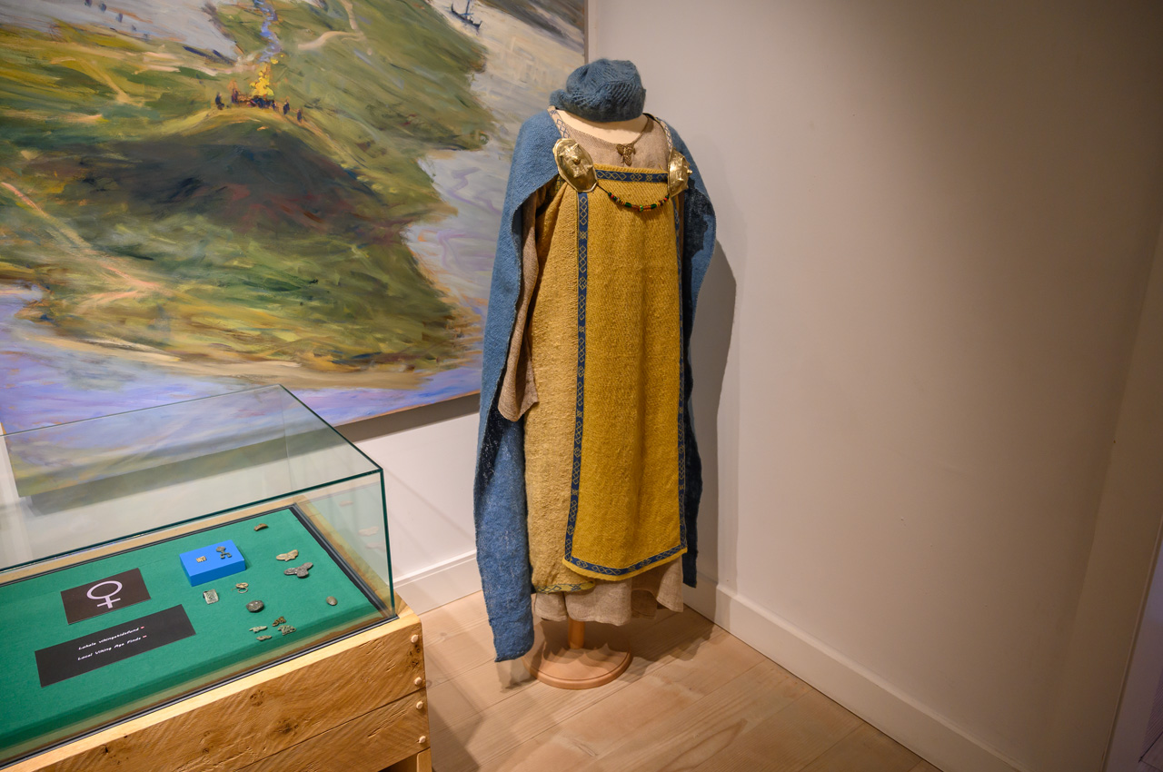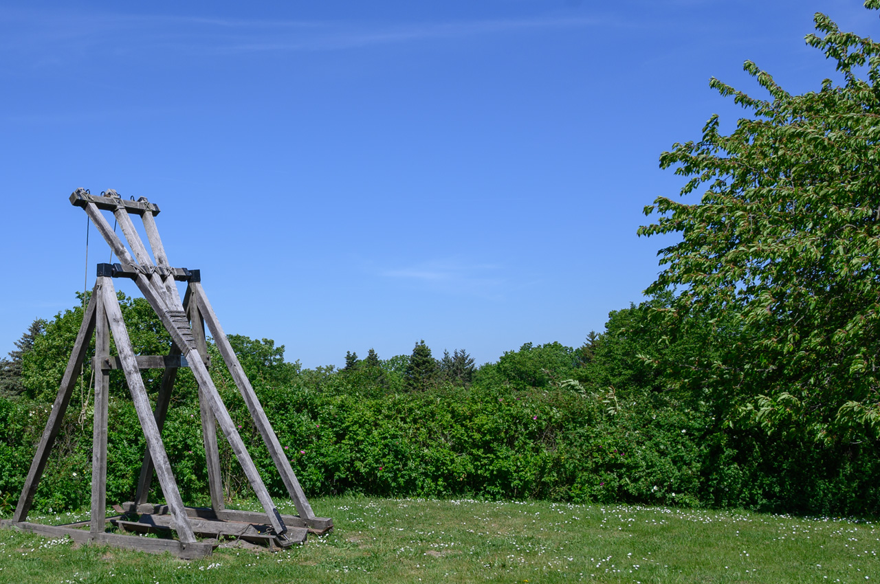 Kurze Zeit nach dem Nachmittagskaffee gab es wieder erste Lücken in der Wolkendecke. Ich habe mich nochmal alleine auf den NIU gesetzt und bin zu der Brücke über den Ulvsund gefahren. Hier habe ich die Drohne aufsteigen lassen und die Brücke von allen Seiten gefilmt. Dabei gab die Drohne fast non Stopp Warnsignale, das der Wind zu böig ist für eine sichere Landung. Bei so einem Wetter habe ich mir sowieso angewöhnt, die letzten Meter der Landung nicht der Automatik zu überlassen. Das hat auch gut funktioniert. Ich habe die Drohne wieder sicher zum Ausgangspunkt zurückgebracht. Von der Brücke aus bin ich weiter in Richtung zu dem kleinen Ort Borren gefahren. Etwas südlich von diesem Ort liegt das Wikingergrab Kong Asgers Høj. Dieses Hügelgrab wurde 1838 von einem Hobbyarchäologe erkundet. Er fand jedoch nur wenige Feuersteinflecken, eine 600 Jahre jüngere Streitaxt und abgebrochene Skelettteile, die nicht näher bestimmt werden konnten. Die Funde wurden dem Nationalmuseum übergeben. 1861 wurde das Haus des Riesen unter Denkmalschutz gestellt. Ein 11 Meter langer Gang führt in die 10m lange und 2m breite Grabkammer. Ich habe es mir verkniffen da hineinzugehen, da man den Gang in gebückter Haltung entlang laufen muss und der Boden durch den Regen der letzten Tage matschig ist. Die Drohne wollte auch nicht hineinfliegen. Sie maulte und meinte der Sicherheitsabstand sei zu gering. Da ich hier allein war, habe ich die Gelegenheit genutzt die Modi der automatischen Drohnenflüge auszuprobieren. Auf dem Rückweg von dort, konnte ich die schöne Landschaft dieser Insel genießen.