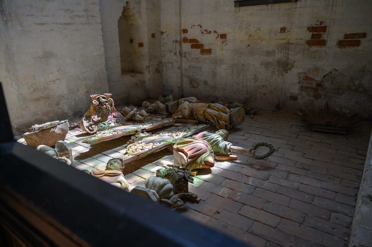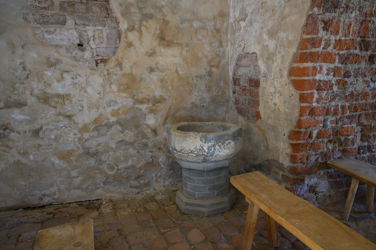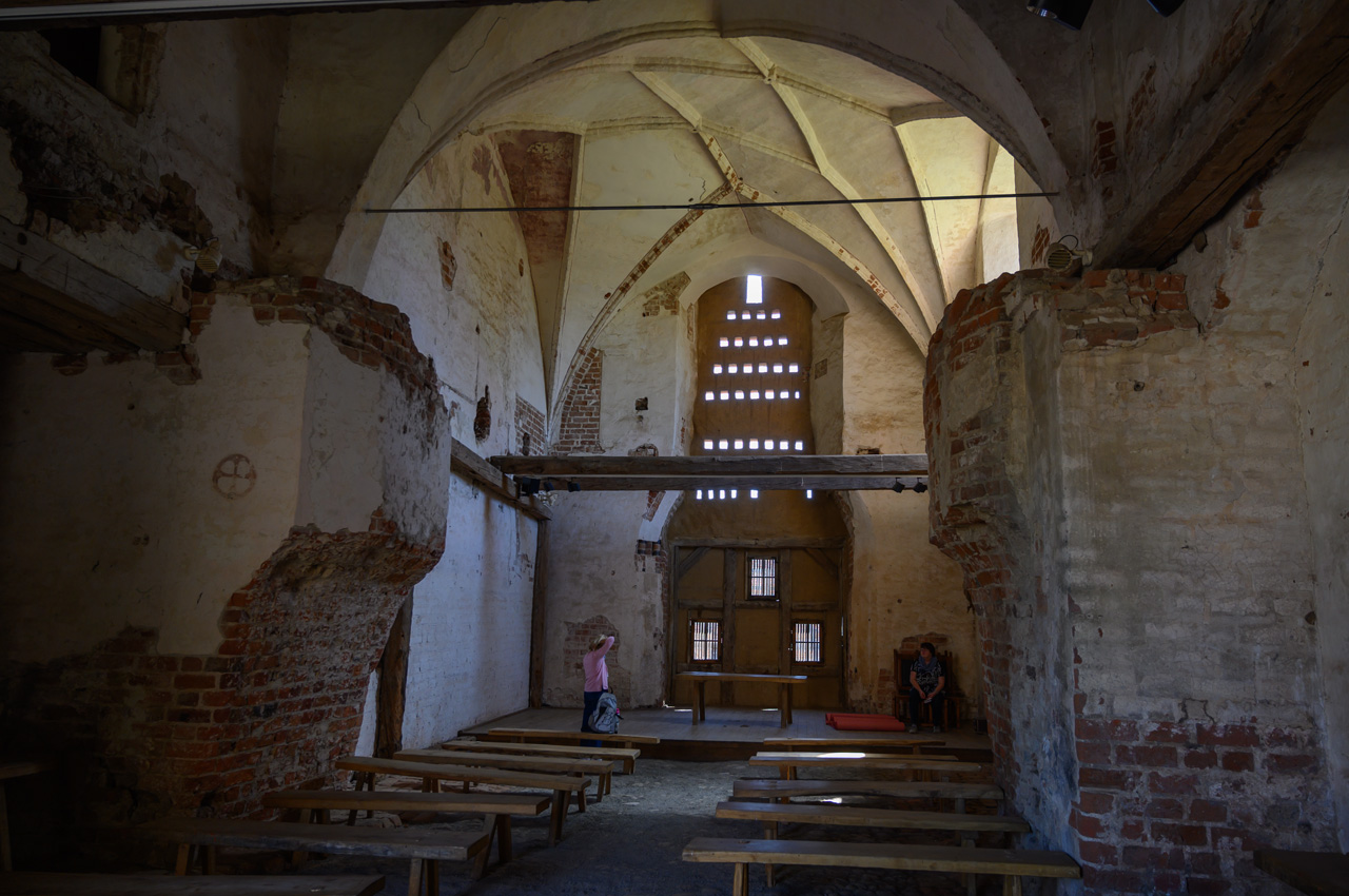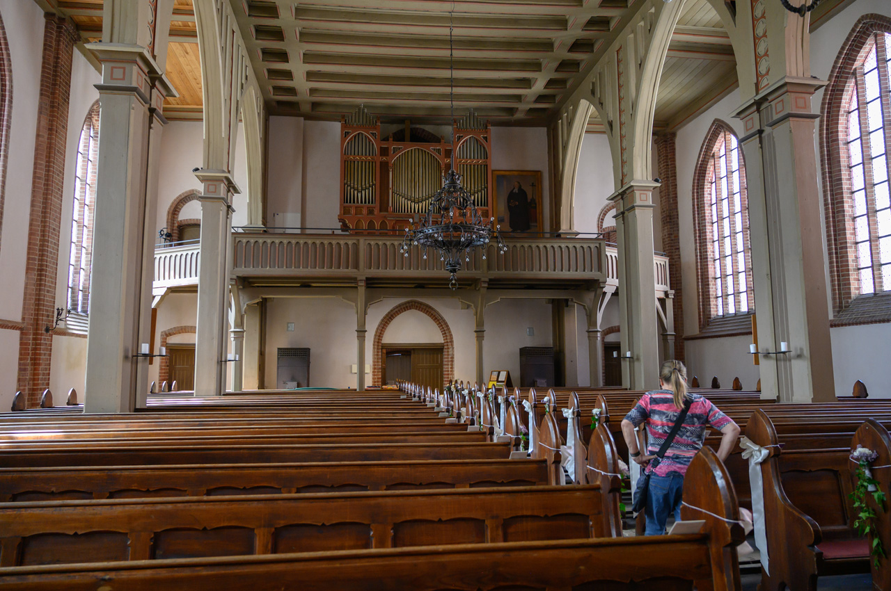 Nach dem Schloss haben wir uns noch die kleine Dorfkirche von Stolpe angesehen. Sie war sogar geöffnet. Sie ist vor dem Kirchenschiff durch eine Glaswand abgetrennt. Das erspart eine Aufsicht.