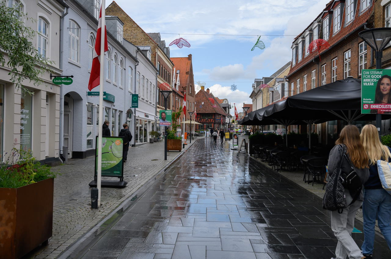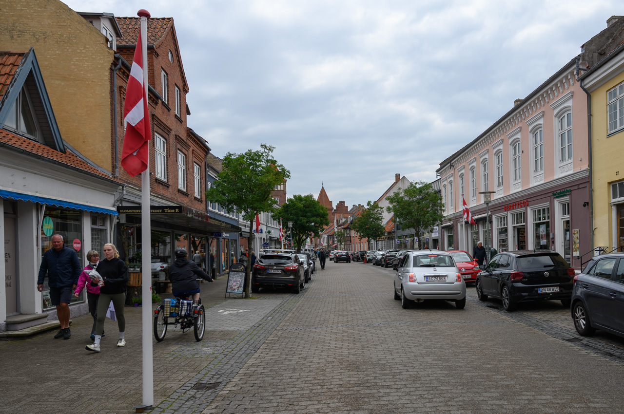 Nach dem Nachmittagskaffee bin ich alleine in die Altstadt von Middelfart gelaufen. Ein Weg ist ca. 1700 Meter lang. In Dänemark begeht man heute den Grundlovsdag. Das ist kein gesetzlicher Feiertag, aber je nach Gegend sind trotzdem die Geschäfte geschlossen. In der Altstadt war jedes Gebäude mit einer dänischen Fahne geschmückt. Mein erster Eindruck von Middelfahrt ist recht positiv. Auch hier gibt es eine Altstadt mit vielen historischen Gebäuden.