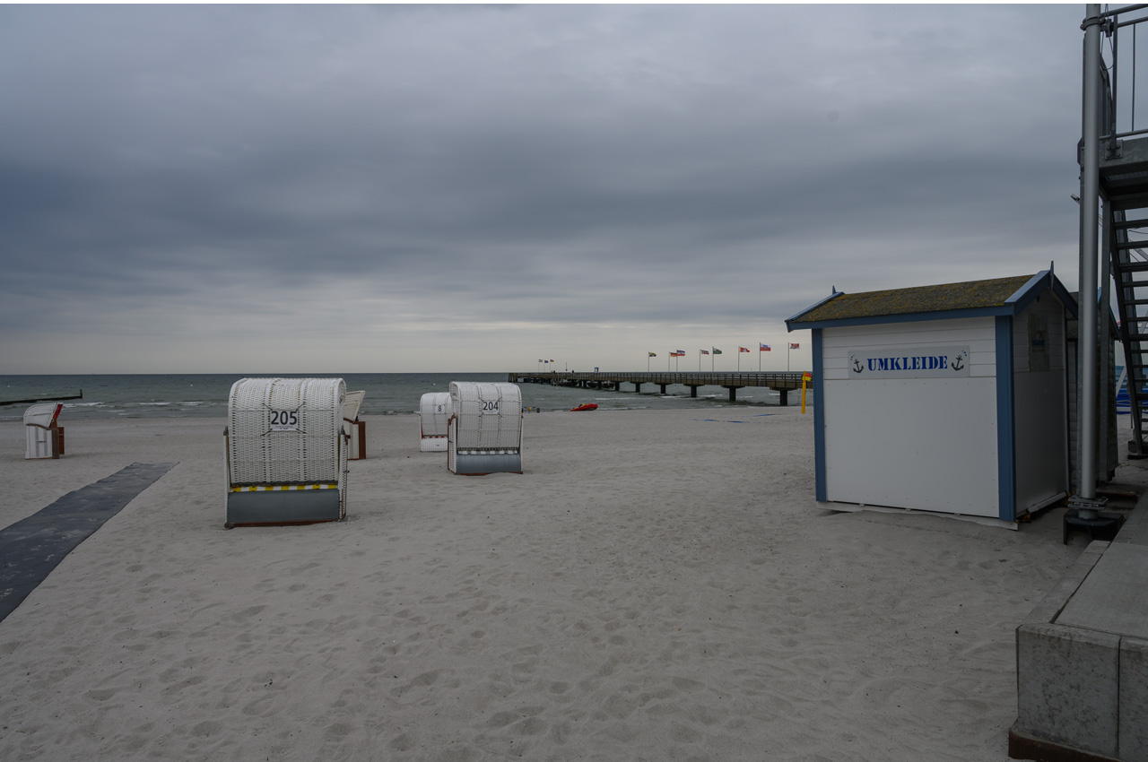 Nach unserem 11:00 Uhr Kaffee haben wir uns zu einem ersten Stadtbummel aufgemacht. Ein Schild mit der Aufschrift zum Badestrand suggerierte uns einen kurzen Weg zum Strand. Als wir dann endlich am Strand waren, war man eigentlich schon reif für eine Pause. Wir sind auf der Uferpromenade zur Fußgängerzone der Innenstadt gelaufen. Hier tobte das Leben und man spürte das Mondäne dieses Ortes mit dem hochgelobten Sandstrand der Ostsee. Am beginnenden Kurpark sind wir dann umgedreht und haben den Rückweg begonnen. Im Womo angekommen, waren wir dann auch entsprechend kaputt. Ich bin sehr stolz auf meinen Sonnenschein, wie tapfer sie wieder läuft.