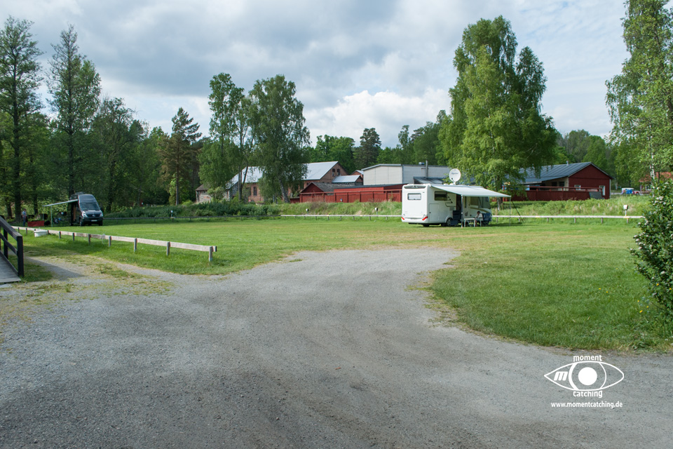 - Das Stellplatzgelände befindet sich an einem kleinen Yachthafen von Borgvik. Die Stellflächen sind mit einem Balken abgegrenzt. Man steht auf Wiese bzw. teilweise Schotter.