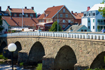 Tullbron ist eine steinerne Bogenbrücke in Falkenberg, die zwischen 1756 und 1761 erbaut wurde . Die Brücke überquert Ätran und ist seit 1984 ein Baudenkmal . Es wurde 1927 und 1994 repariert und restauriert . Die Brücke wird noch immer für den Verkehr genutzt und täglich passieren durchschnittlich 3.800 Fahrzeuge. [ 1 ] Der Name der Brücke kommt daher, dass man bis 1914 Zoll zahlen musste, um über die Brücke in die Stadt zu gelangen.. Die Ruine nach der Burg Falkenberg befindet sich auf der Ostseite der Brücke.