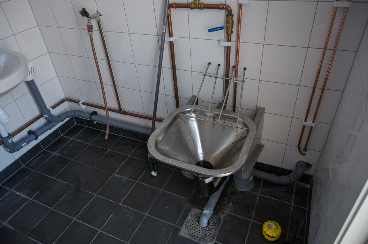 - Die V+E ist einfach, aber absolut zweckmäßig und gut anfahrbar. Zur Fäkalienentsorgung steht ein separater Raum zur Verfügung mit einem VA-Becken und einem Handwaschbecken.